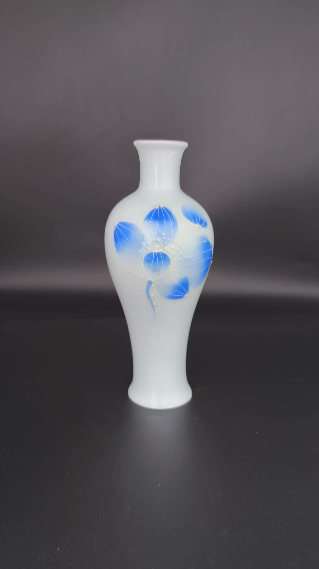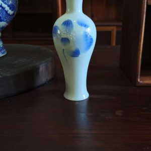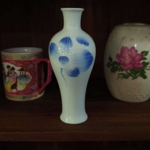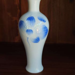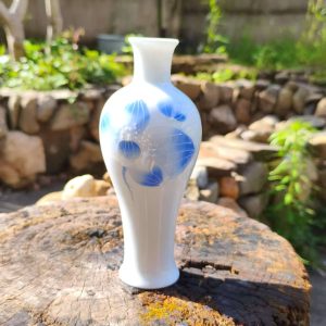 Enhance your space with this beautifully crafted white ceramic vase featuring delicate blue floral patterns. Perfect for displaying flowers or adding an artistic touch to your home decor.