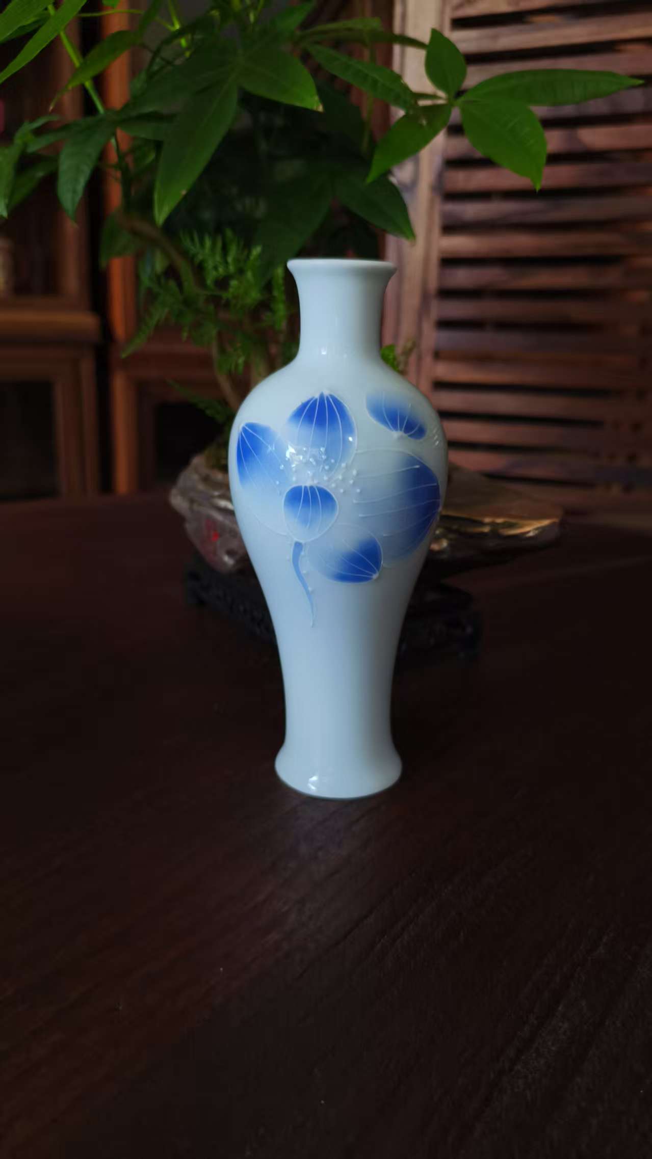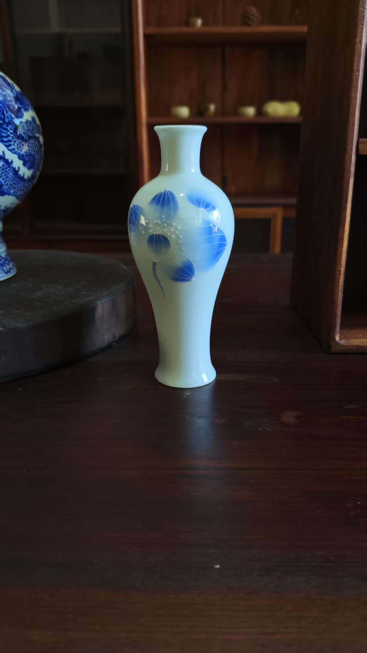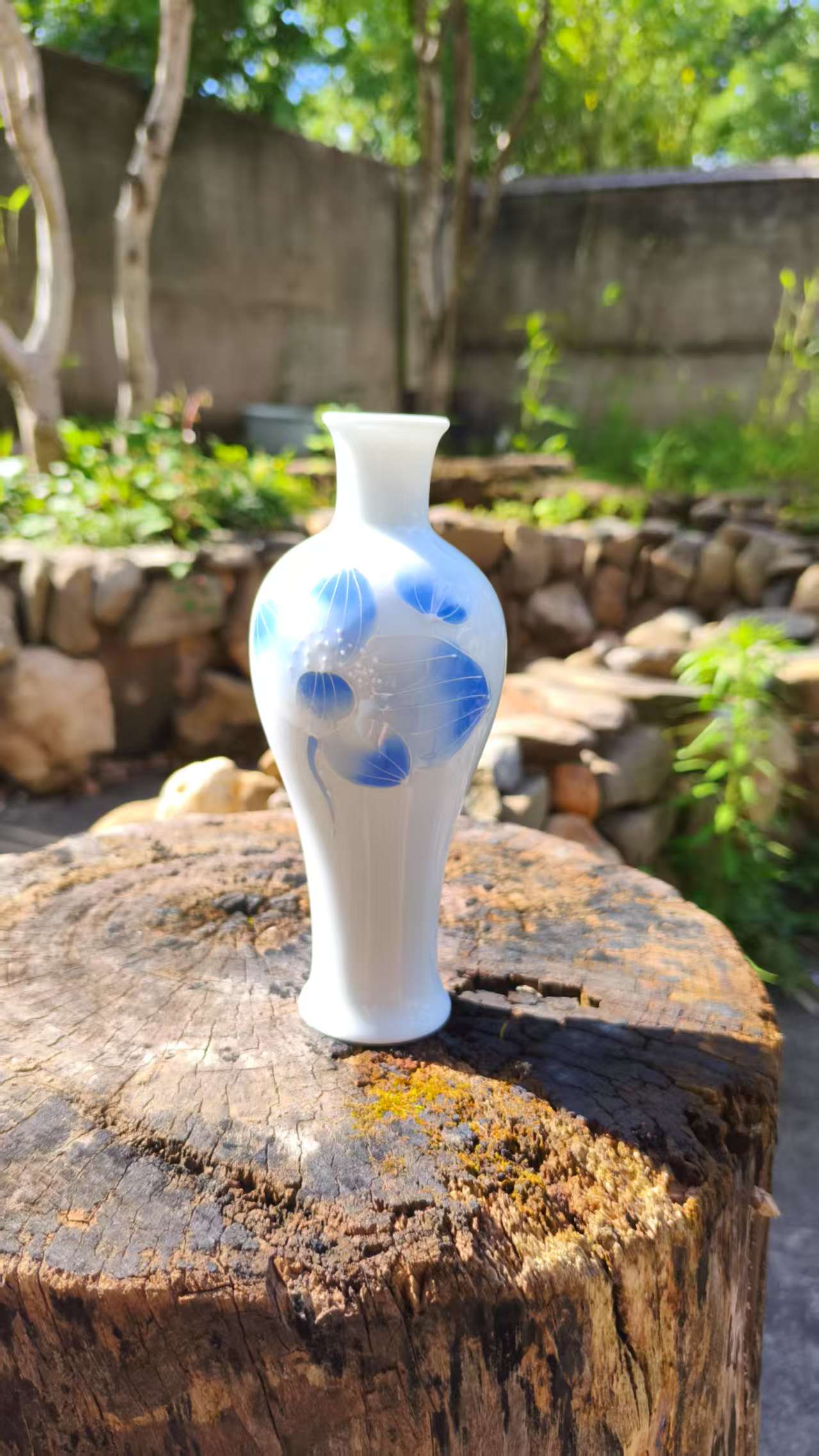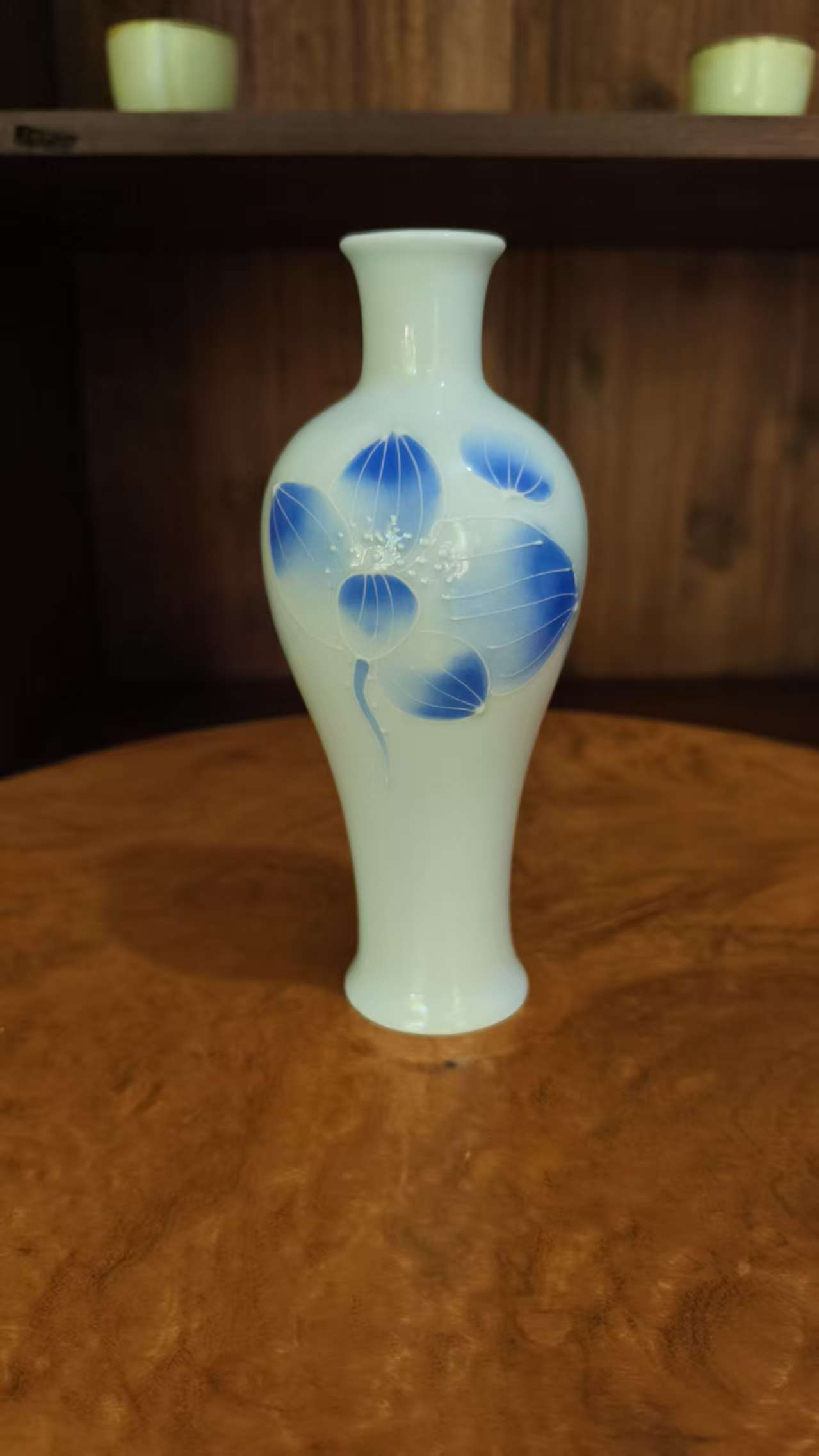 White Ceramic Vase with Blue Floral Patterns – Elegant Home Decor