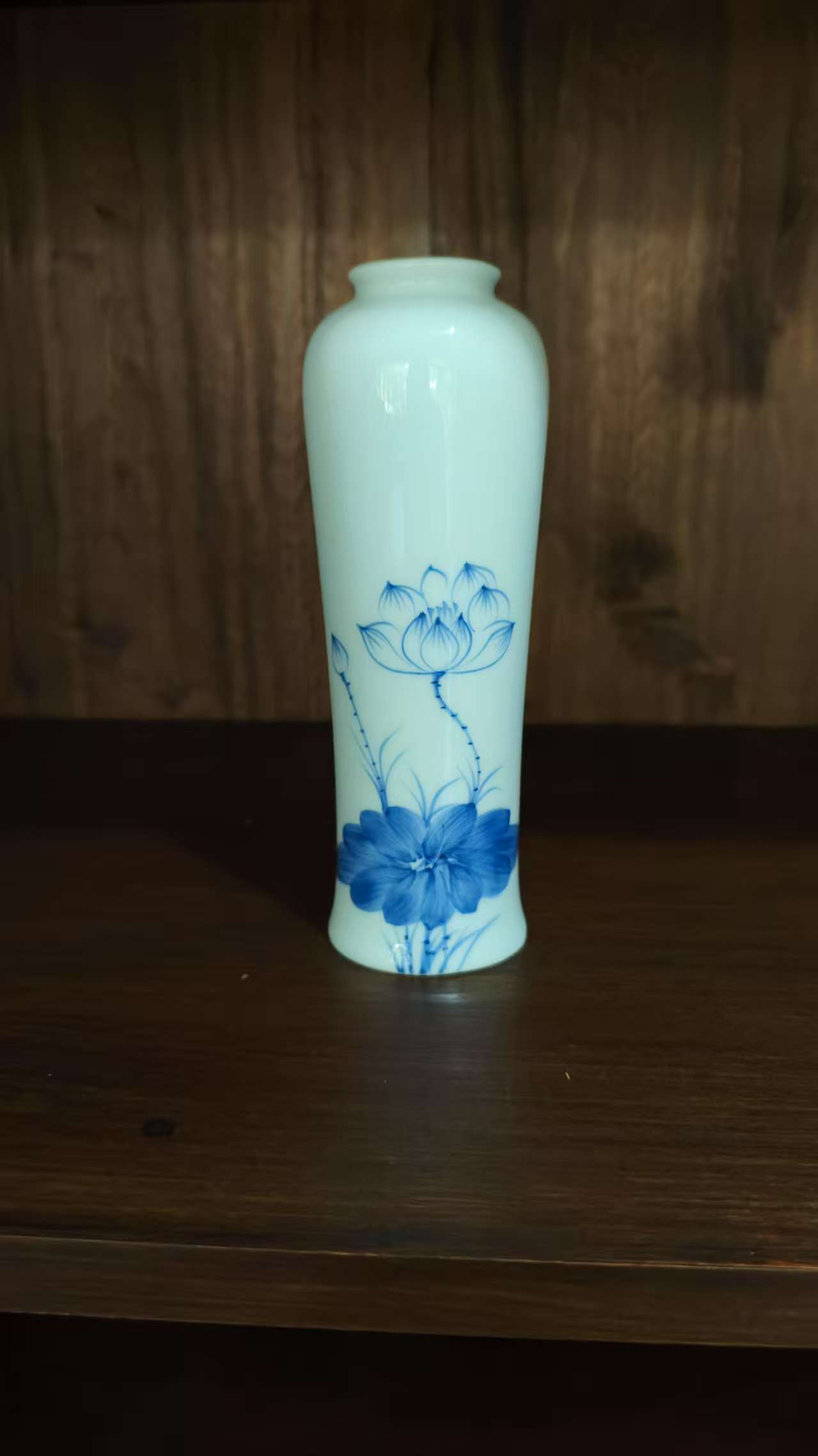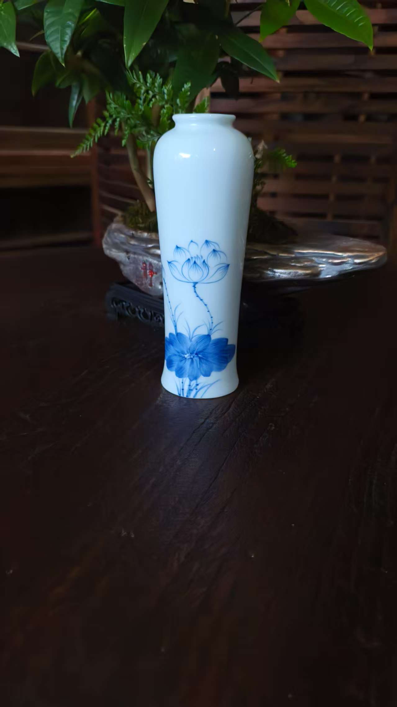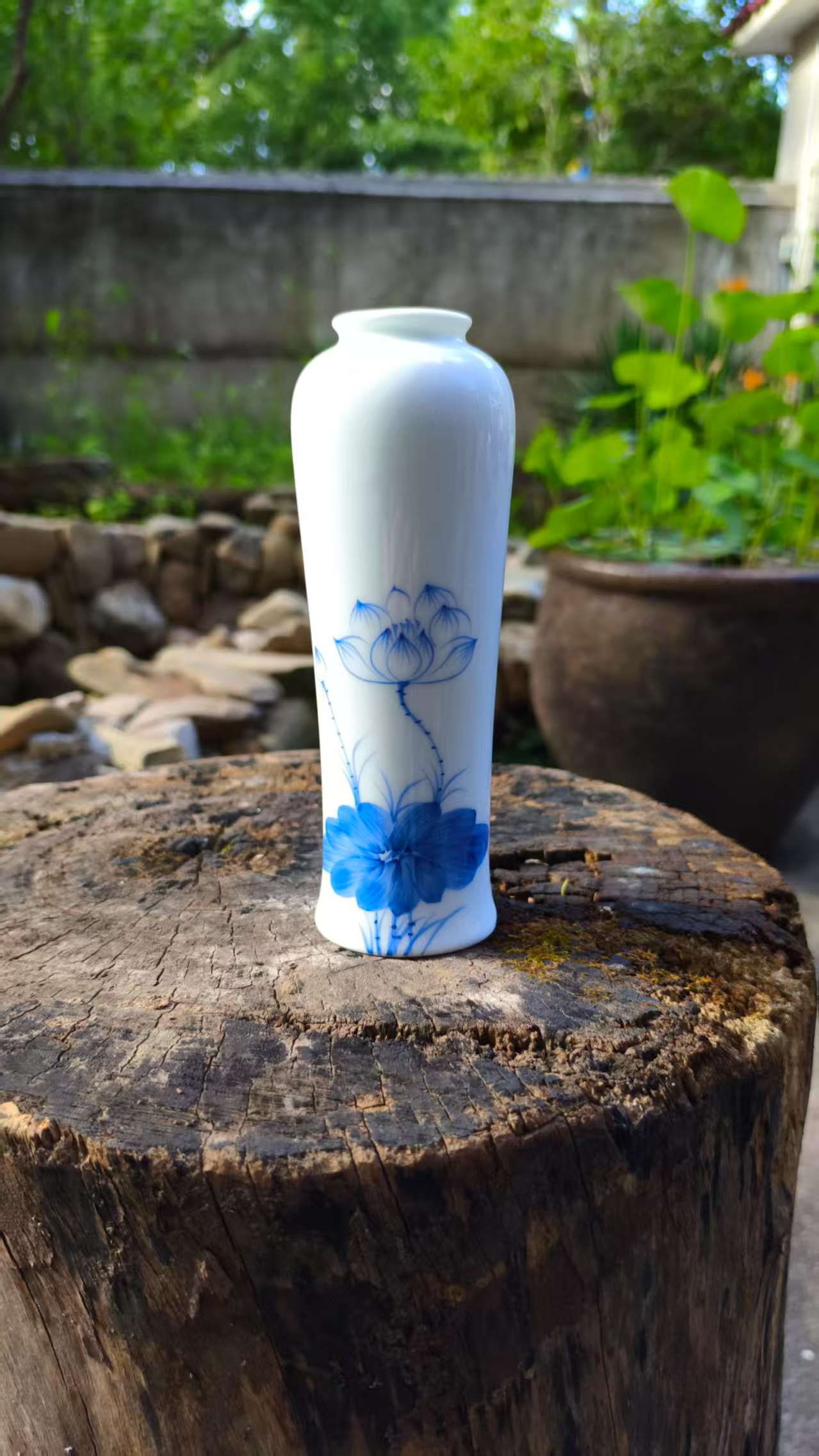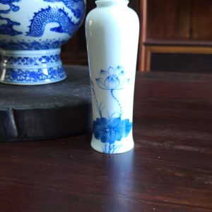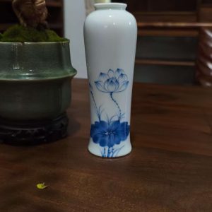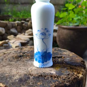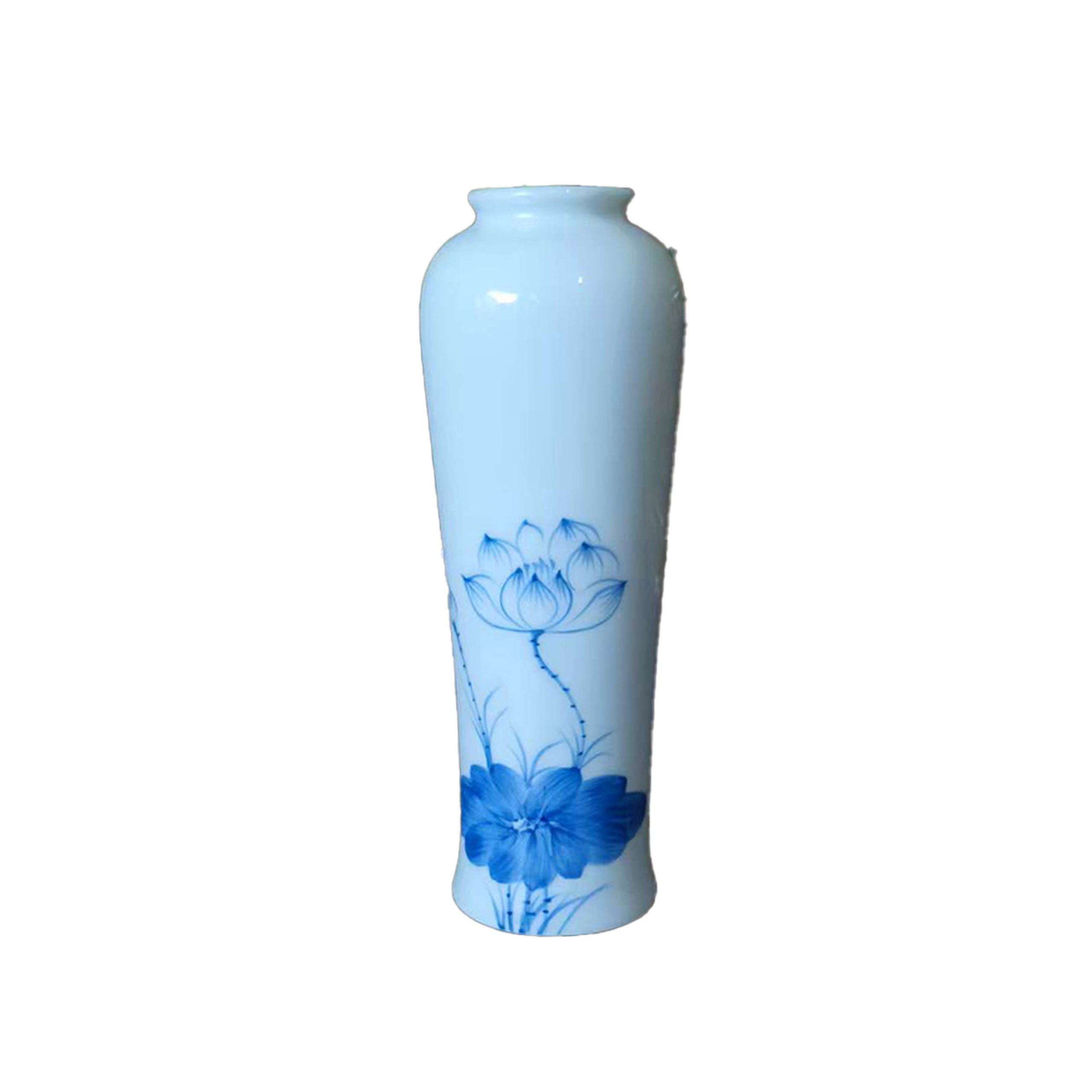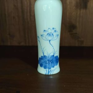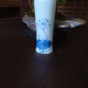 Enhance your space with this beautifully crafted white ceramic vase featuring a delicate blue lotus flower design. Perfect for displaying flowers or adding an artistic touch to your home decor.