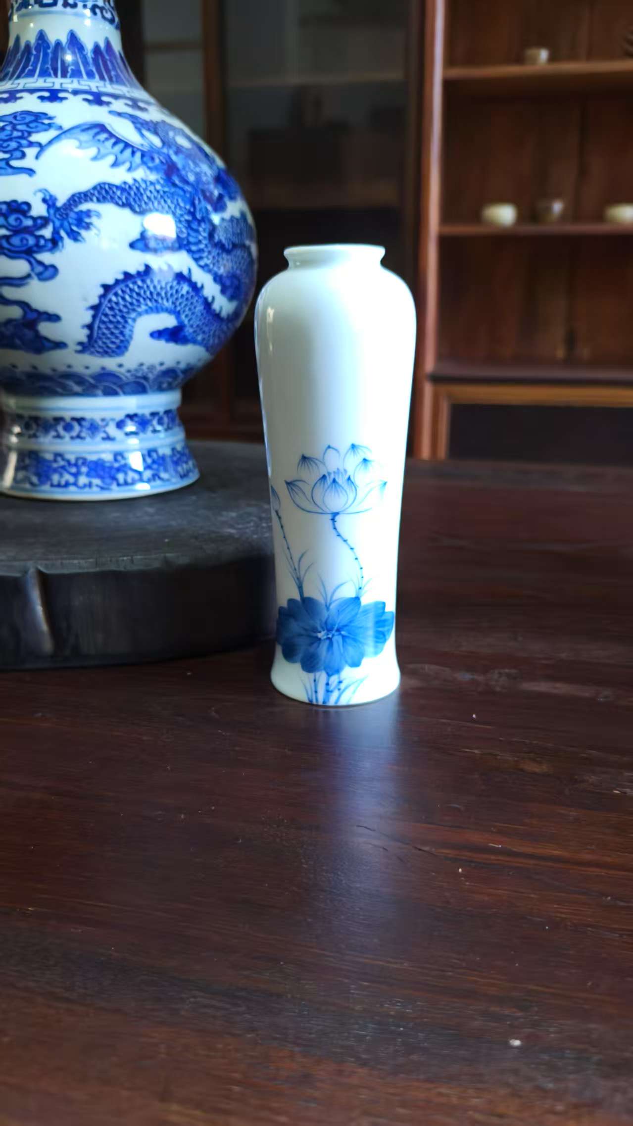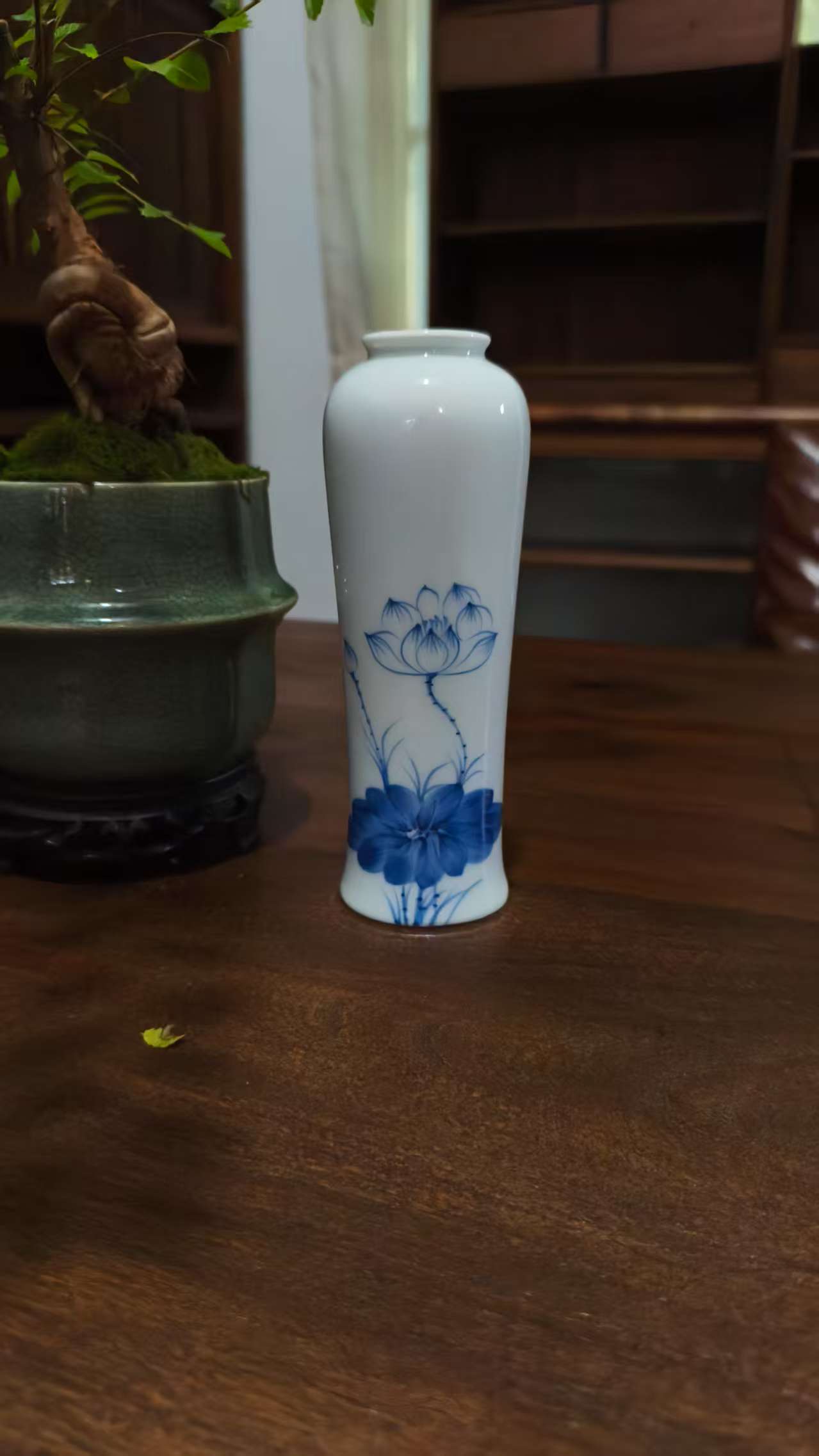 White Ceramic Vase with Blue Lotus Flower Pattern – Elegant Home Decor