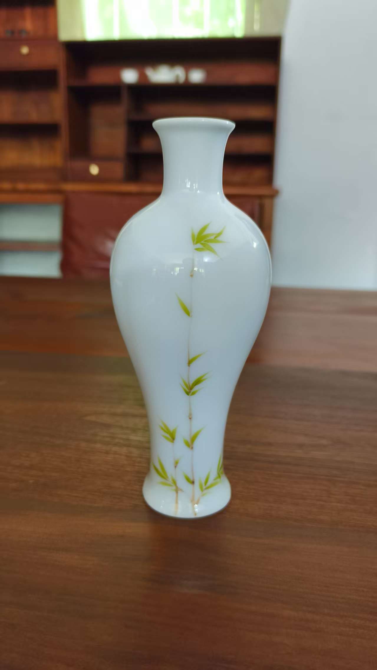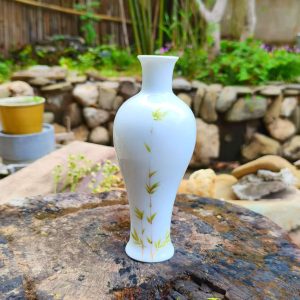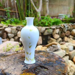 White Ceramic Vase with Bamboo Leaf Pattern – Elegant Home Decor