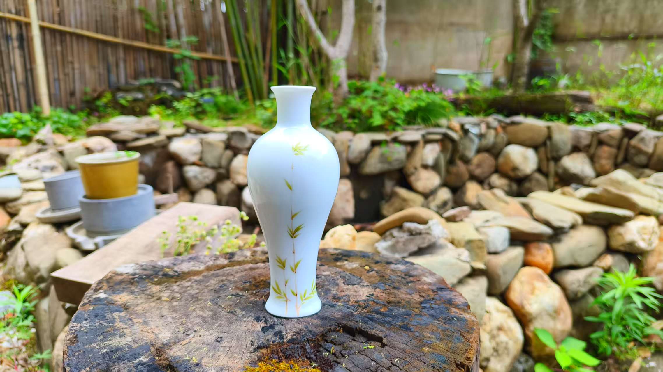 Add a nature – inspired elegant touch to your space with this white ceramic vase featuring delicate bamboo leaf patterns. Perfect for displaying flowers or as a standalone decorative accent.