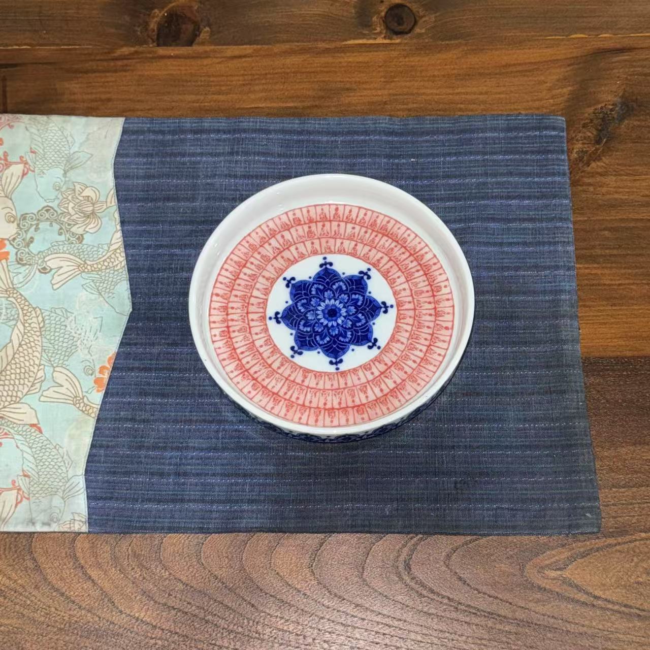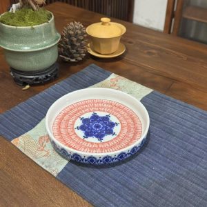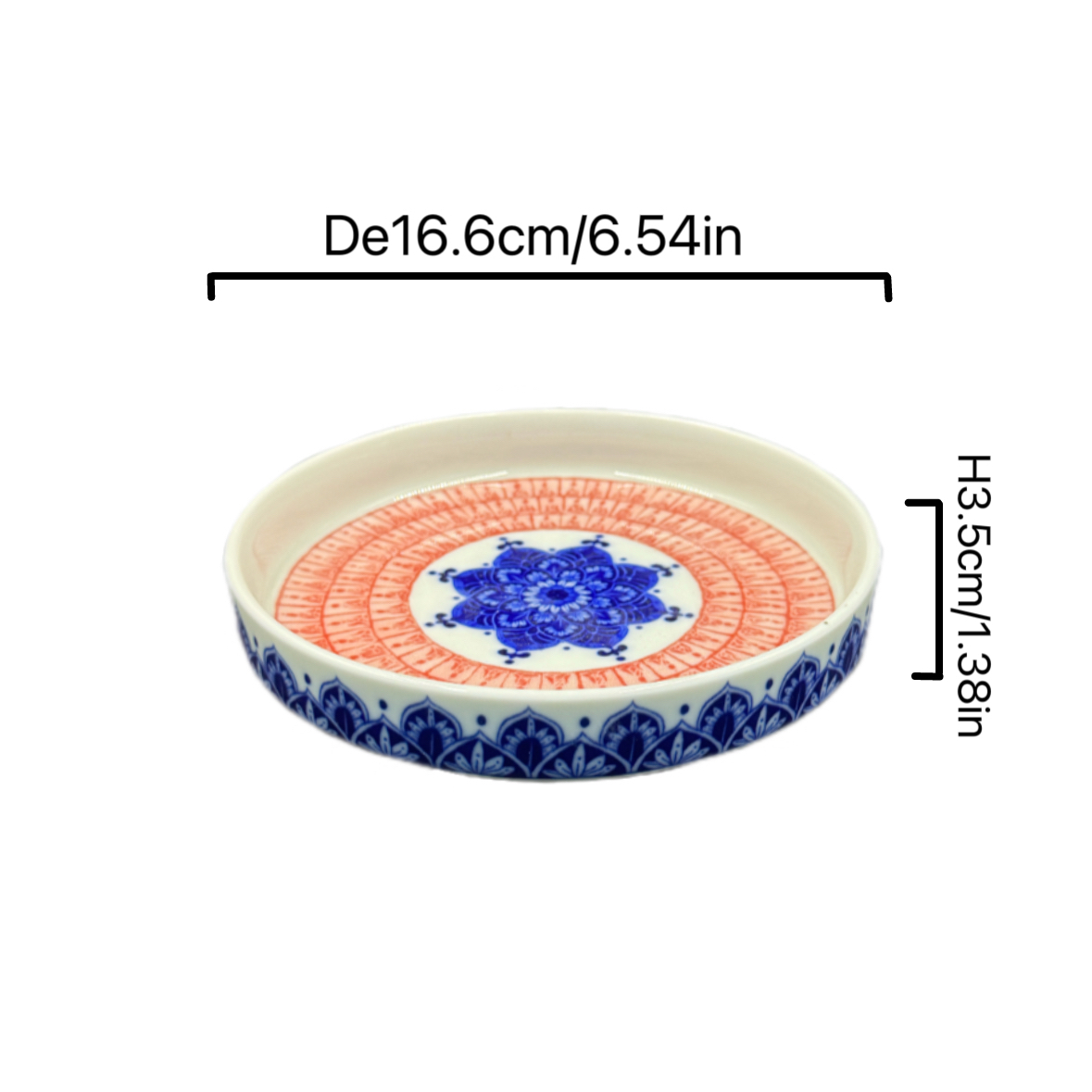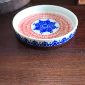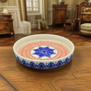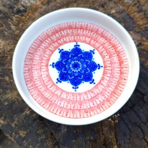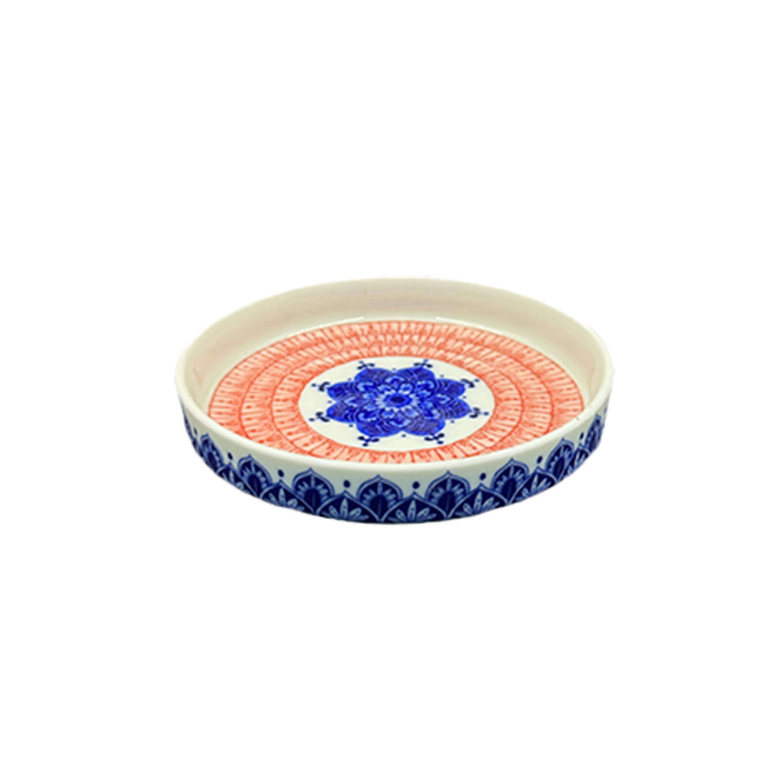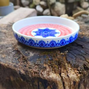 Elevate your space with this blue and red mandala ceramic tray, featuring intricate patterns. Perfect for serving fruits, home decor, or organizing small items.