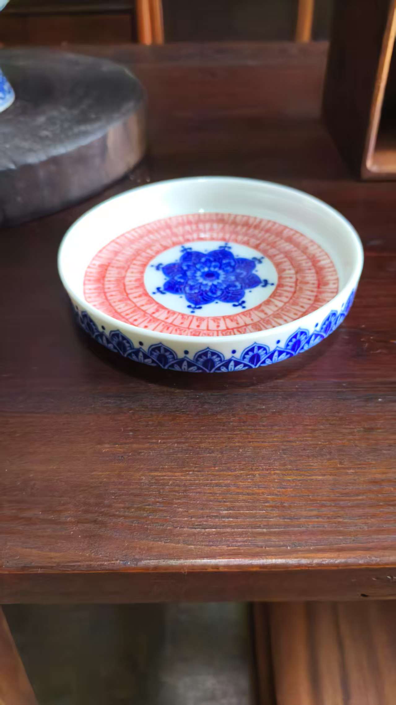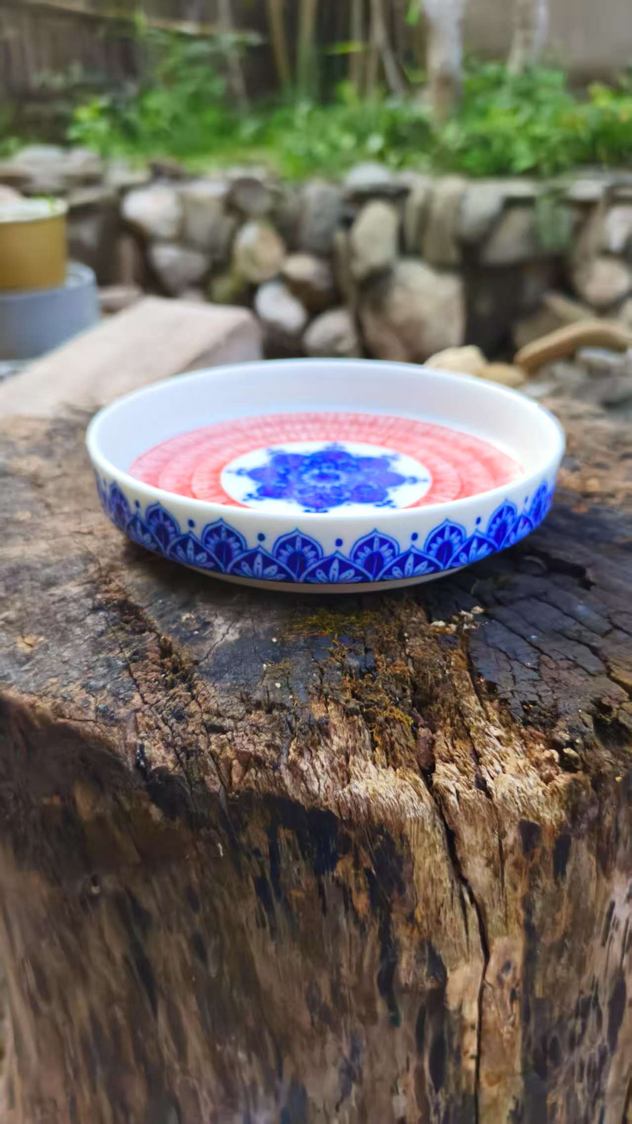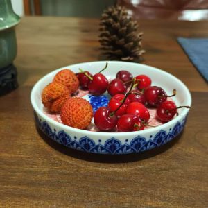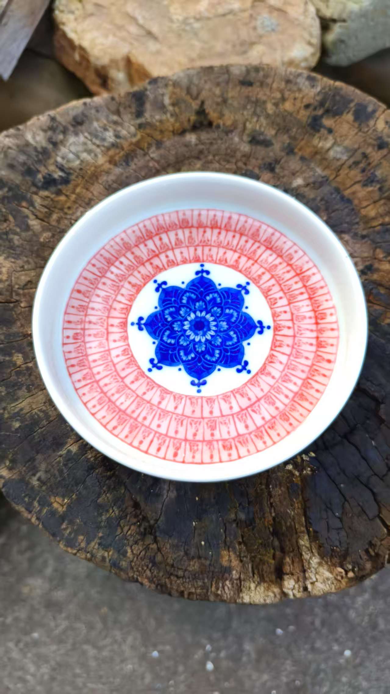 Elevate your space with this blue and red mandala ceramic tray, featuring intricate patterns. Perfect for serving fruits, home decor, or organizing small items.