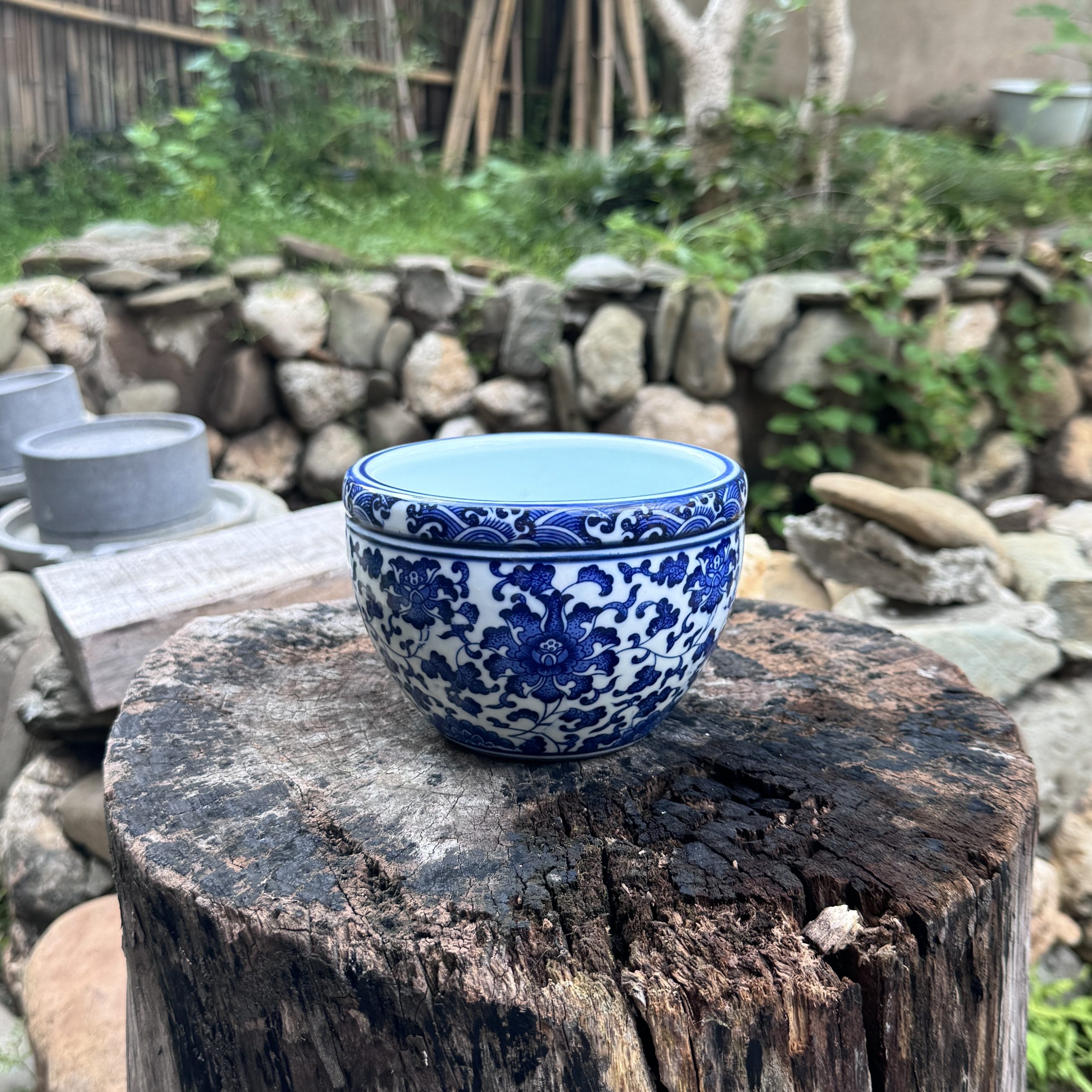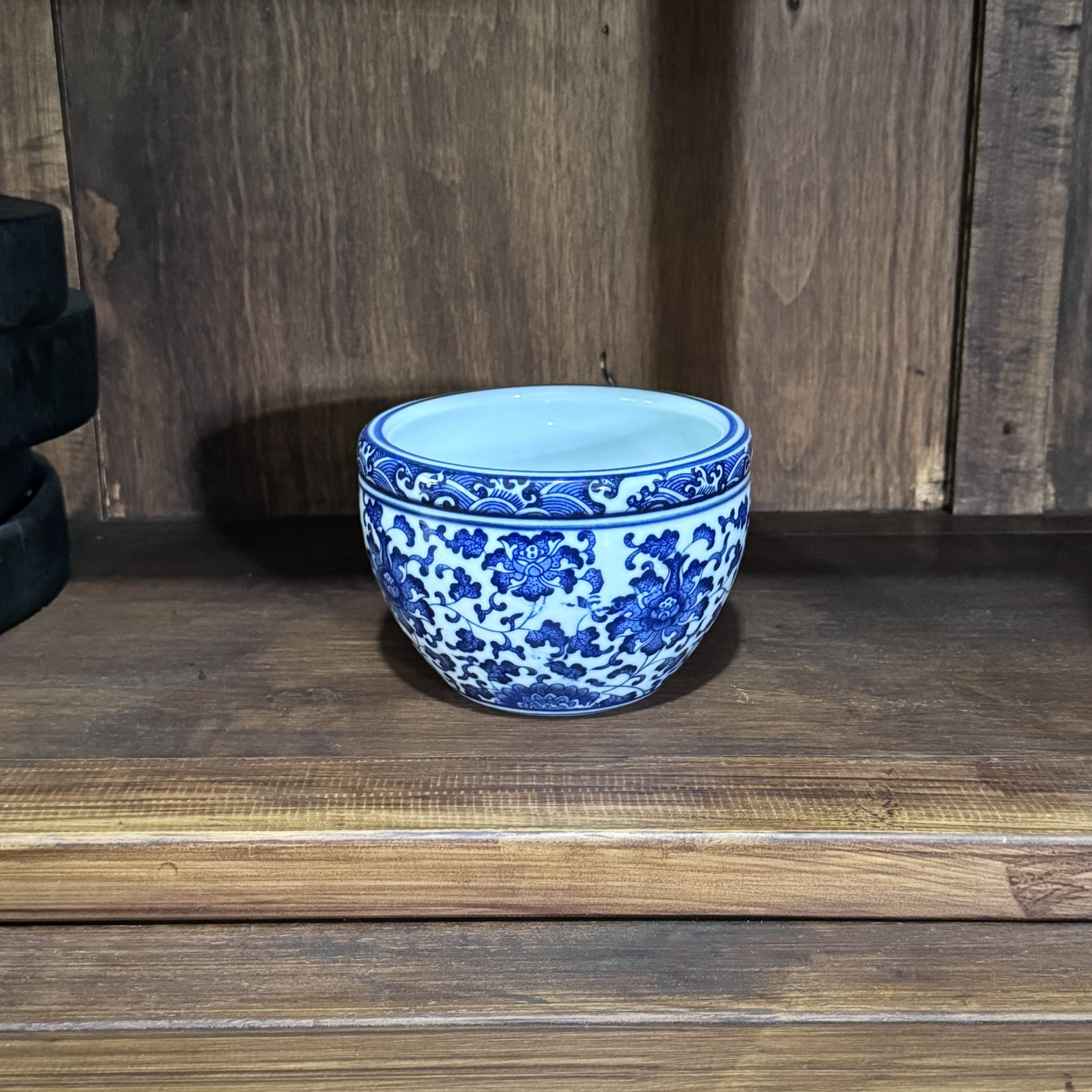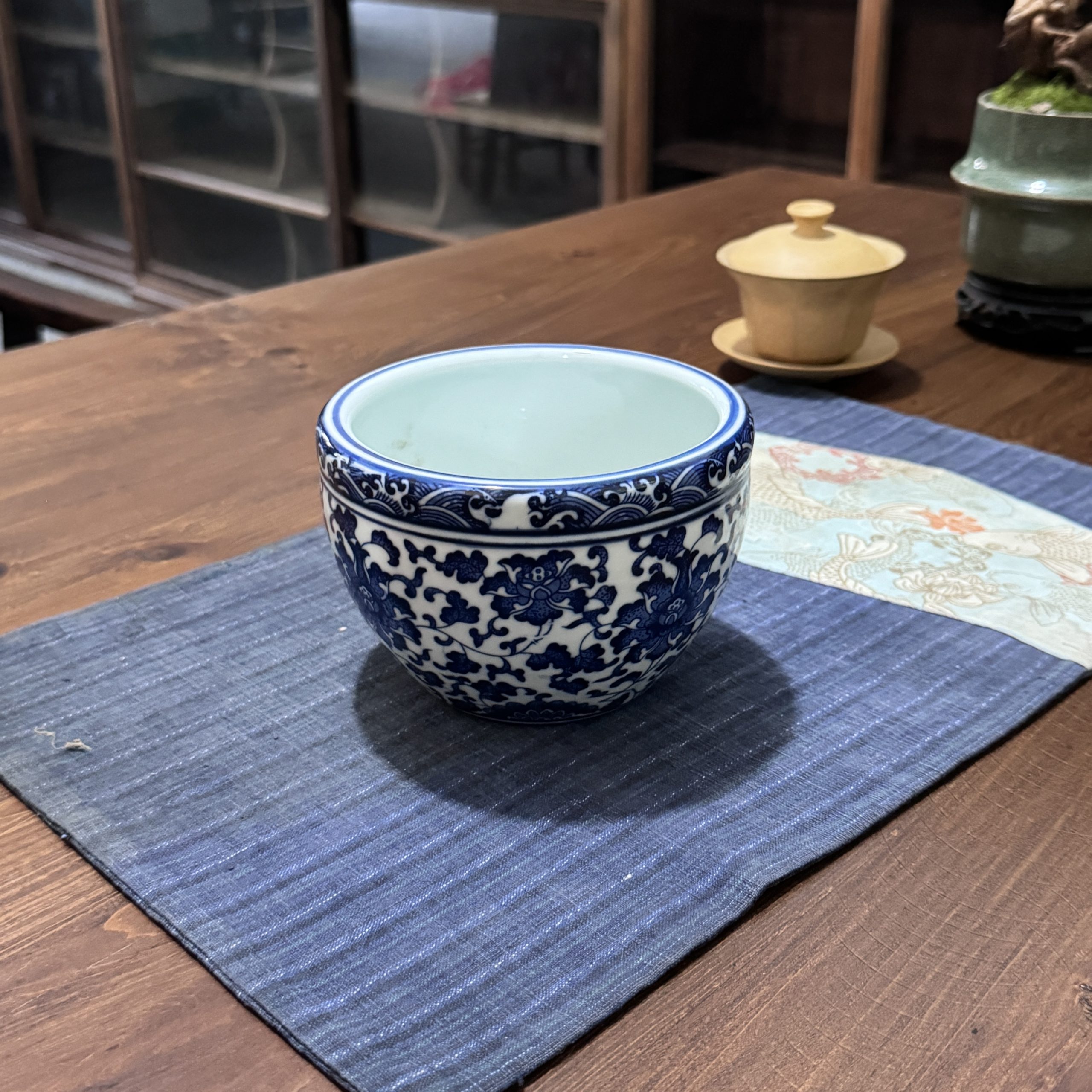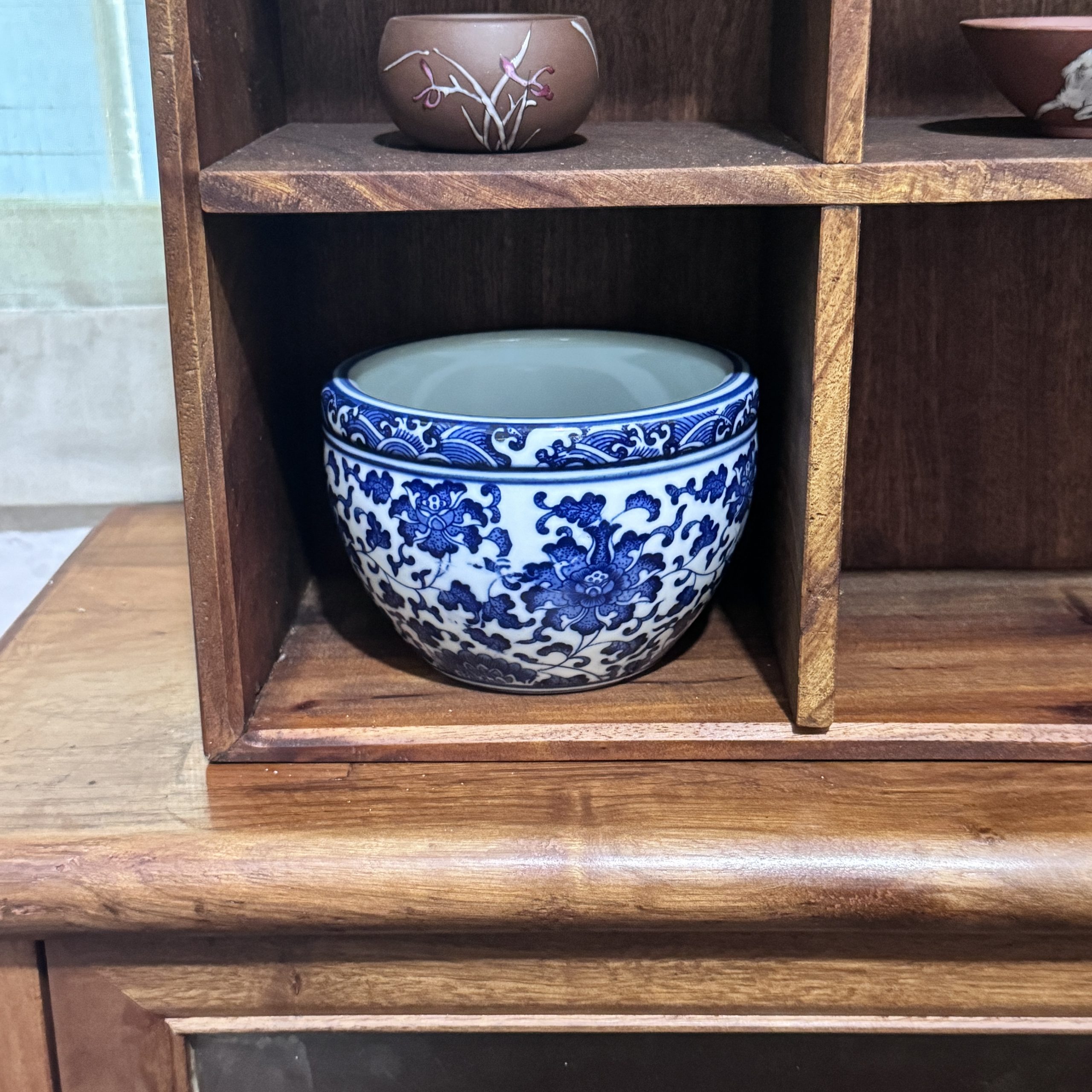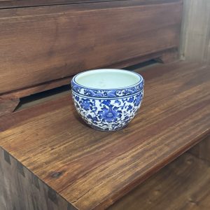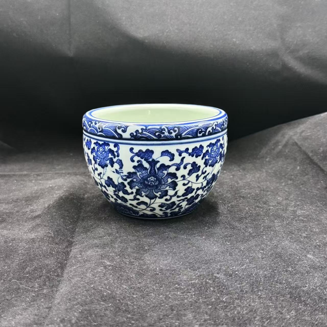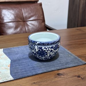 Add a touch of traditional Chinese charm to your space with this blue and white ceramic jar, featuring intricate floral patterns. Perfect for home decor or as a decorative accent in tea ceremonies.