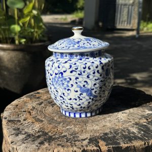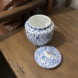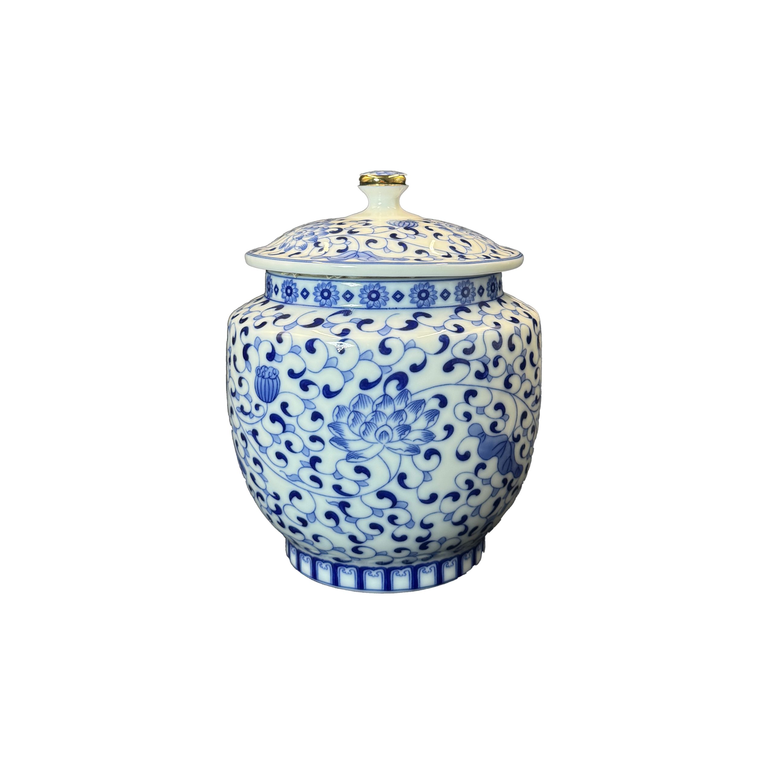 Blue and White Porcelain Tea Storage Jar with Lotus Scroll Pattern