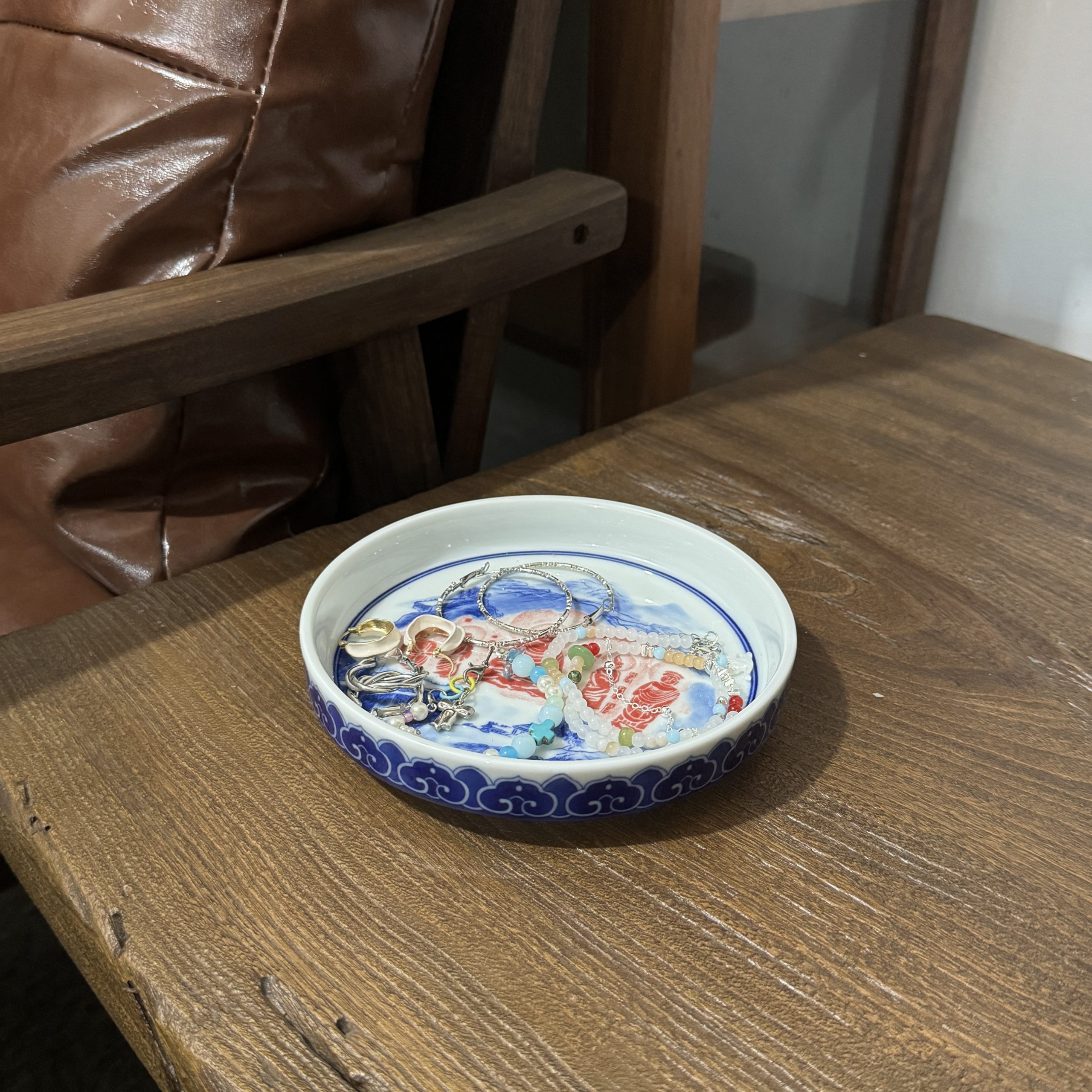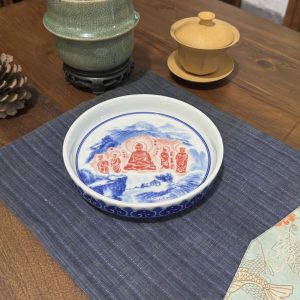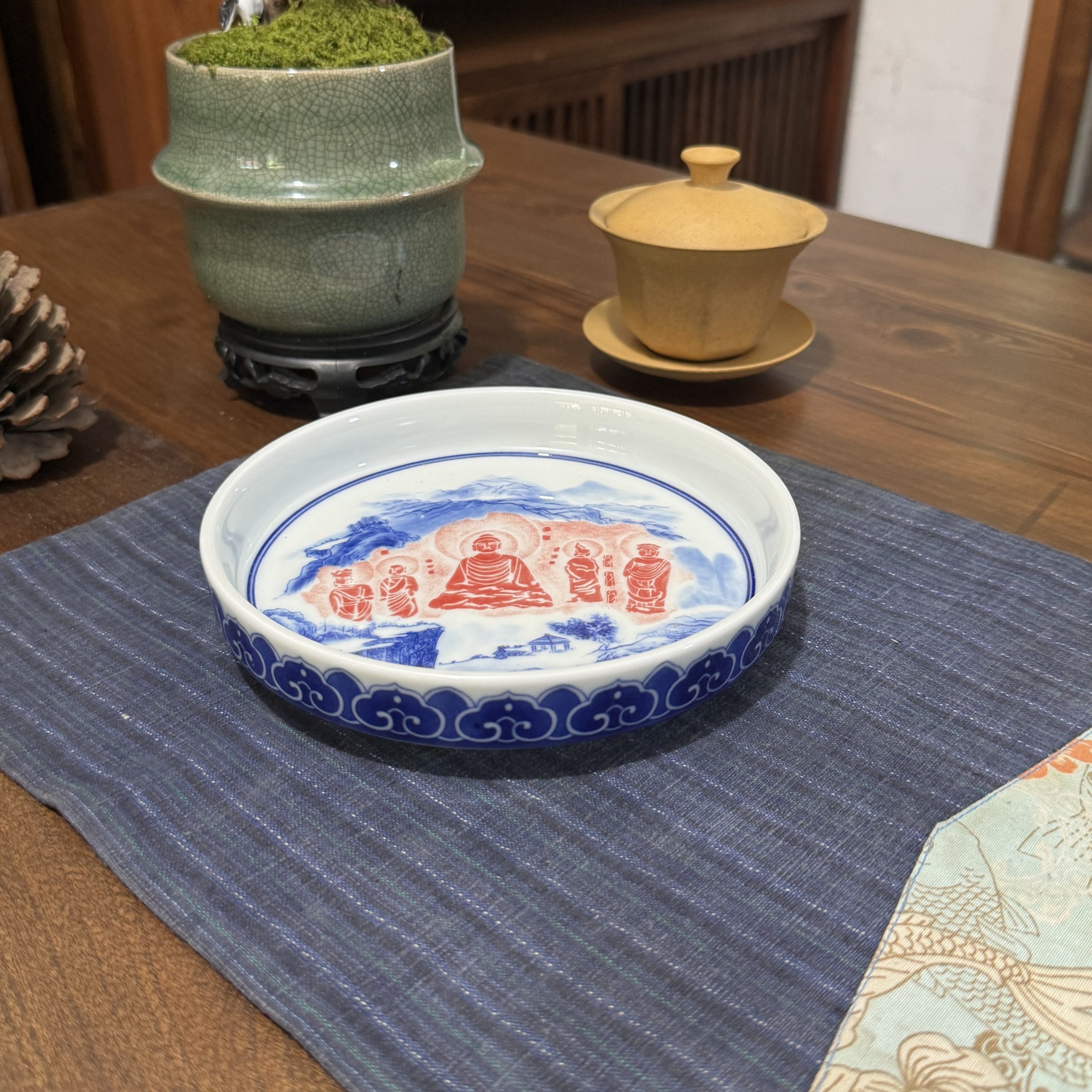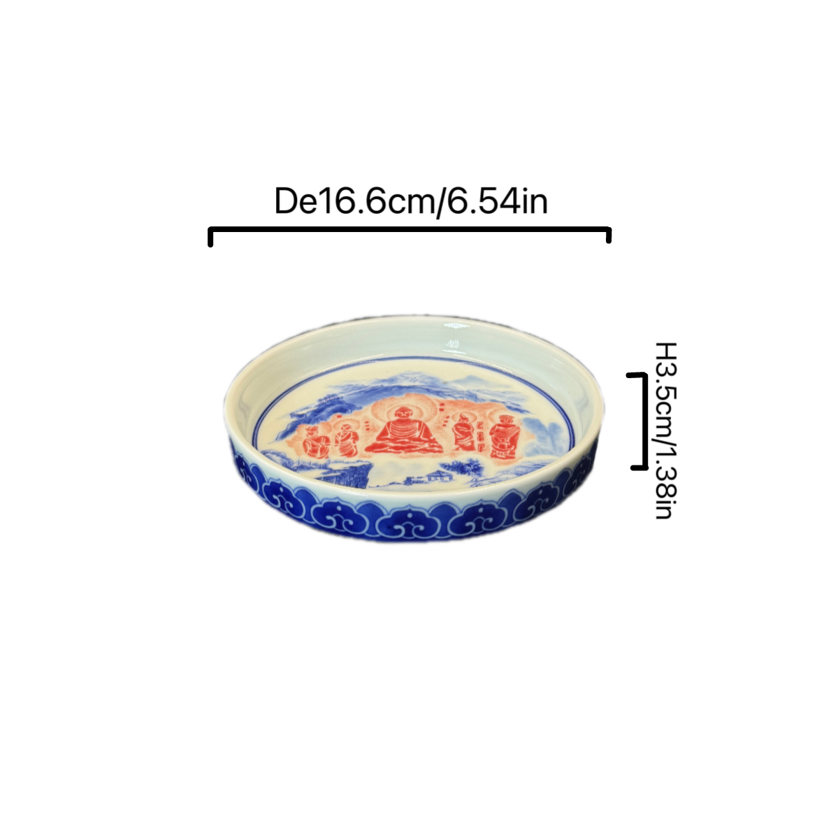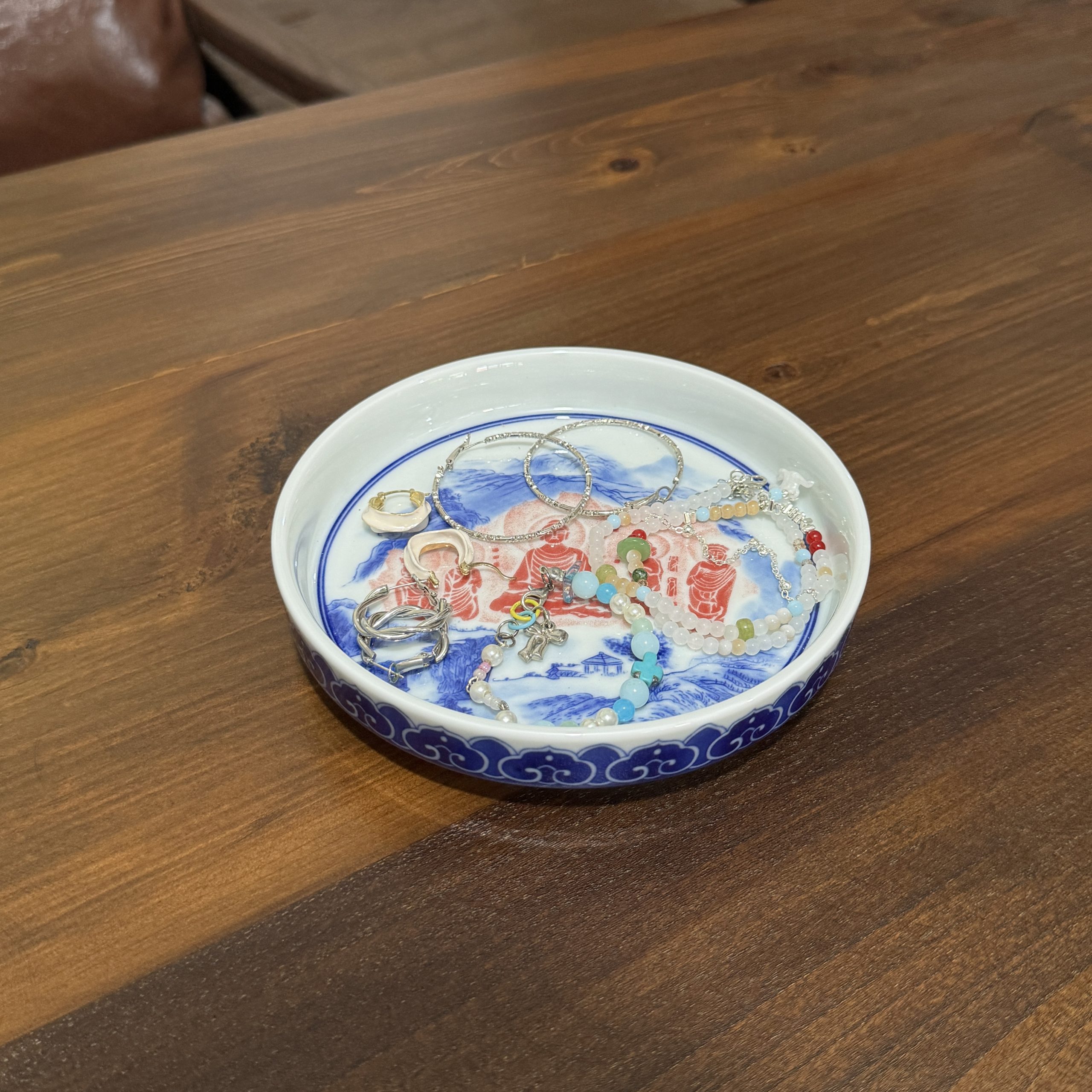 Chinese Ceramic Tray with Buddha & Landscape Patterns – Elegant Jewelry & Home Decor