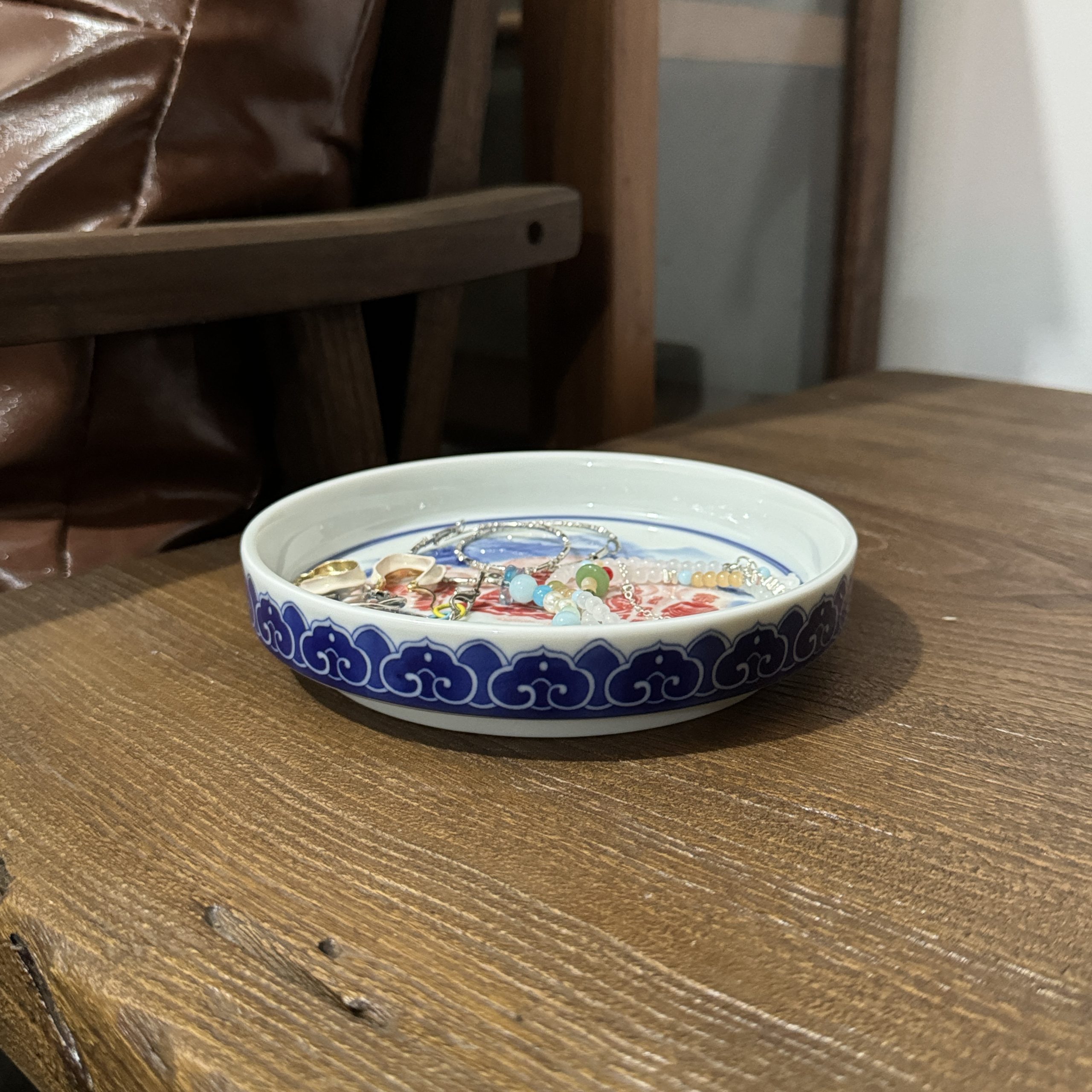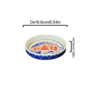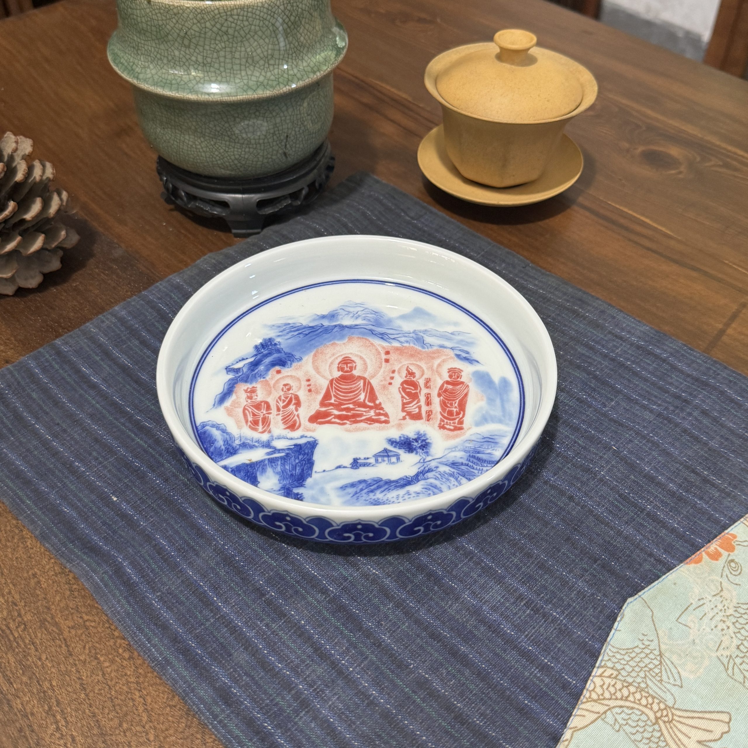 Elevate your space with this Chinese ceramic tray featuring Buddha, landscape designs, and blue cloud motifs. Perfect for organizing jewelry or adding traditional charm to home decor.