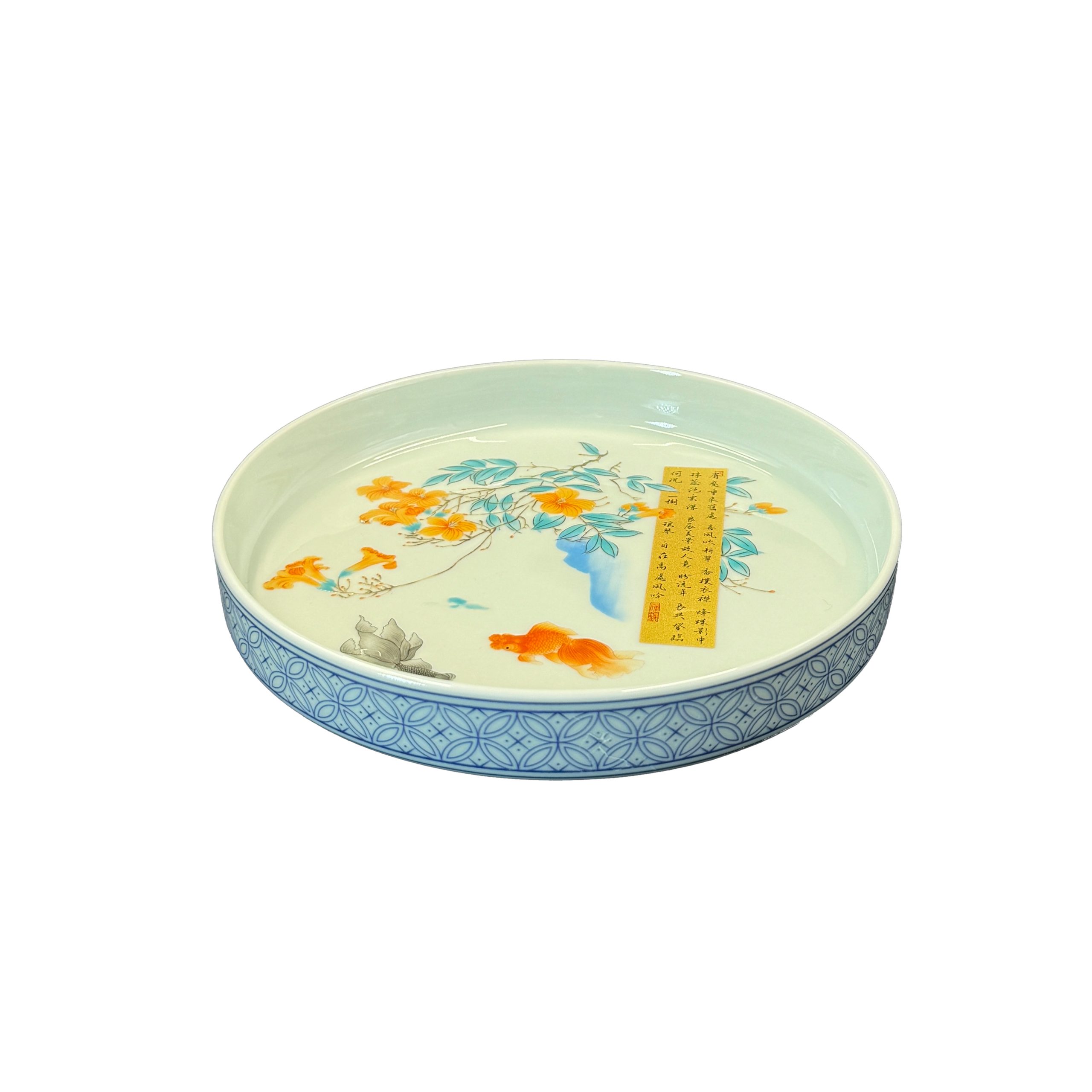Chinese Ceramic Tray with Goldfish, Floral & Calligraphy Patterns – Elegant Home Decor