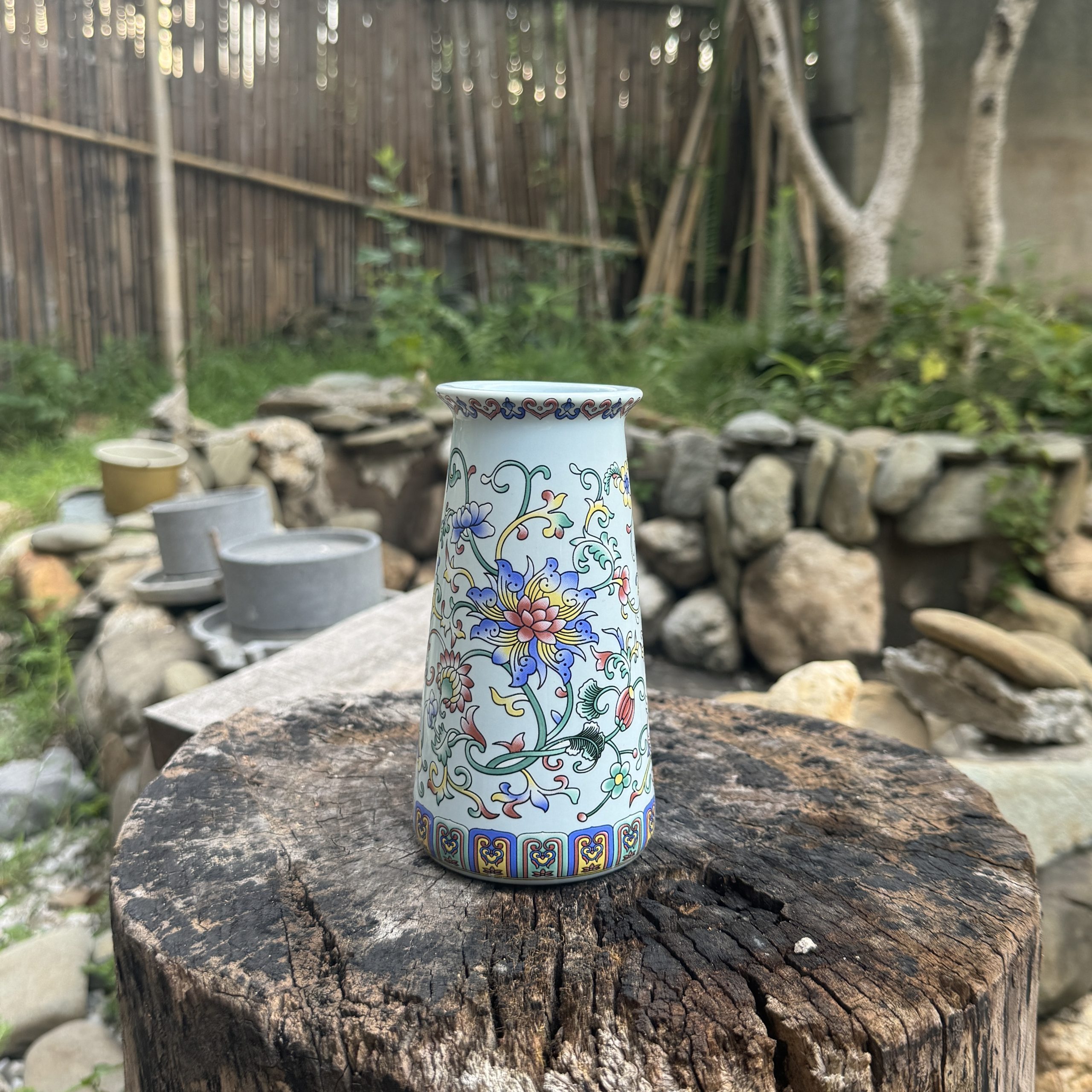 Chinese Ceramic Vase with Colorful Floral Patterns – Elegant Home Decor