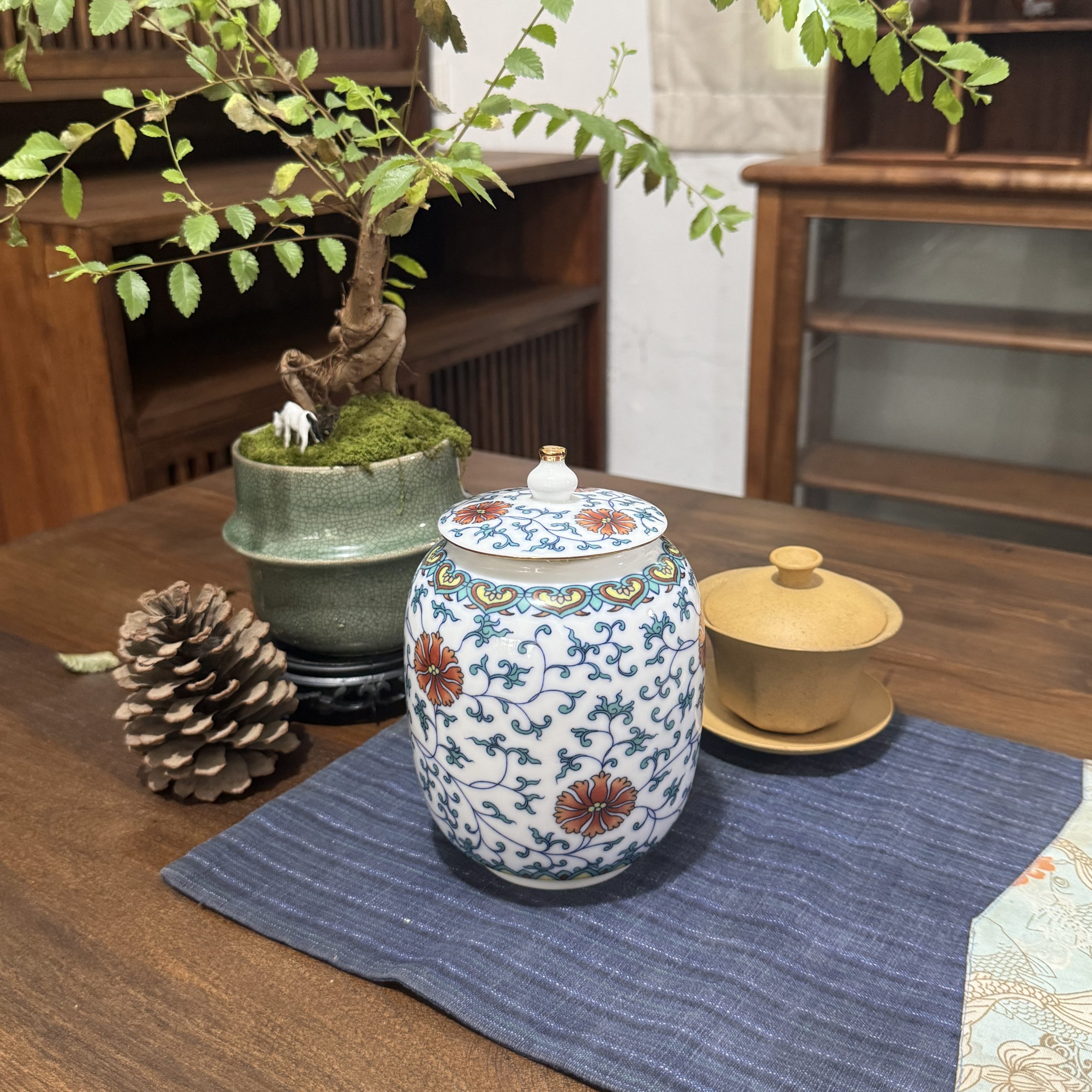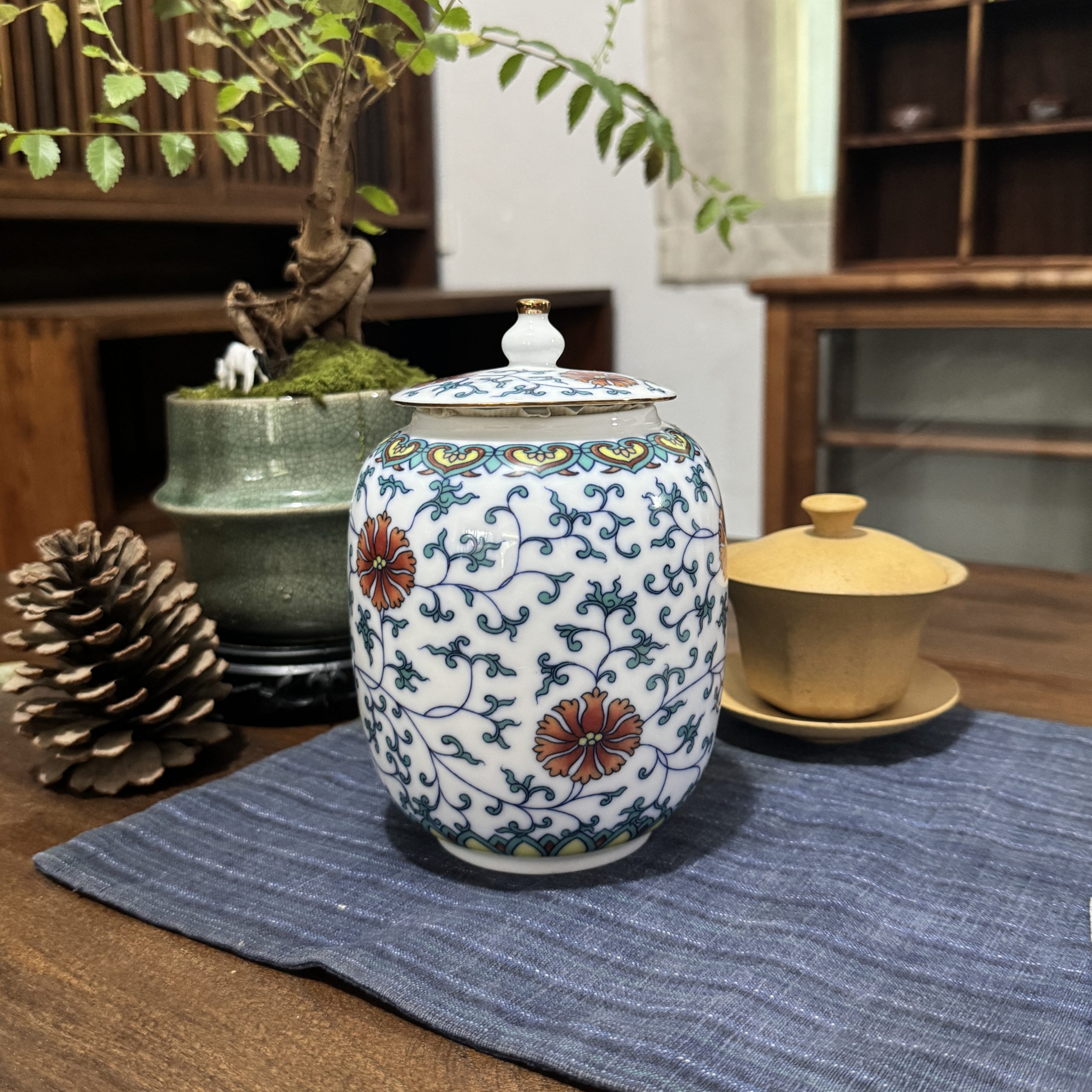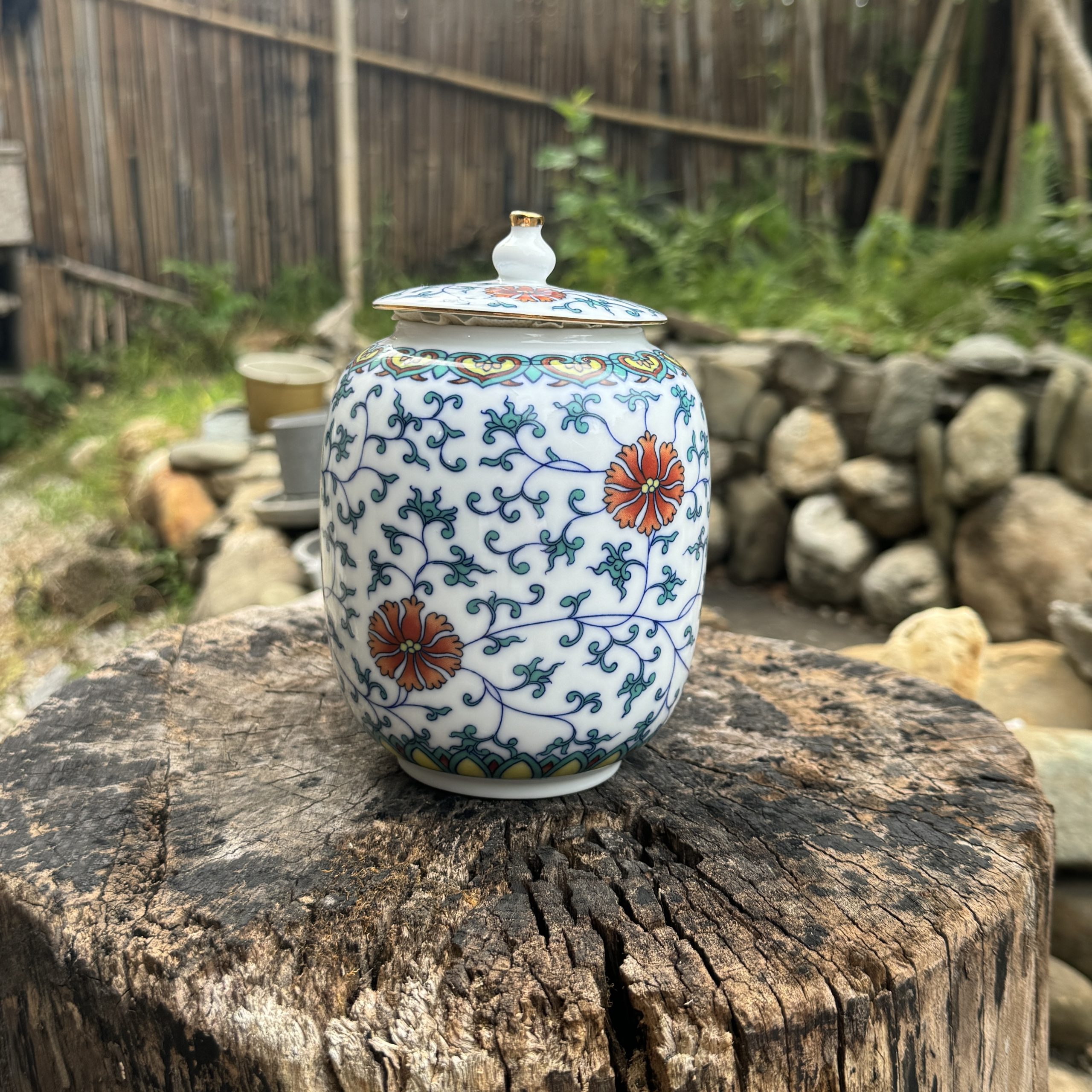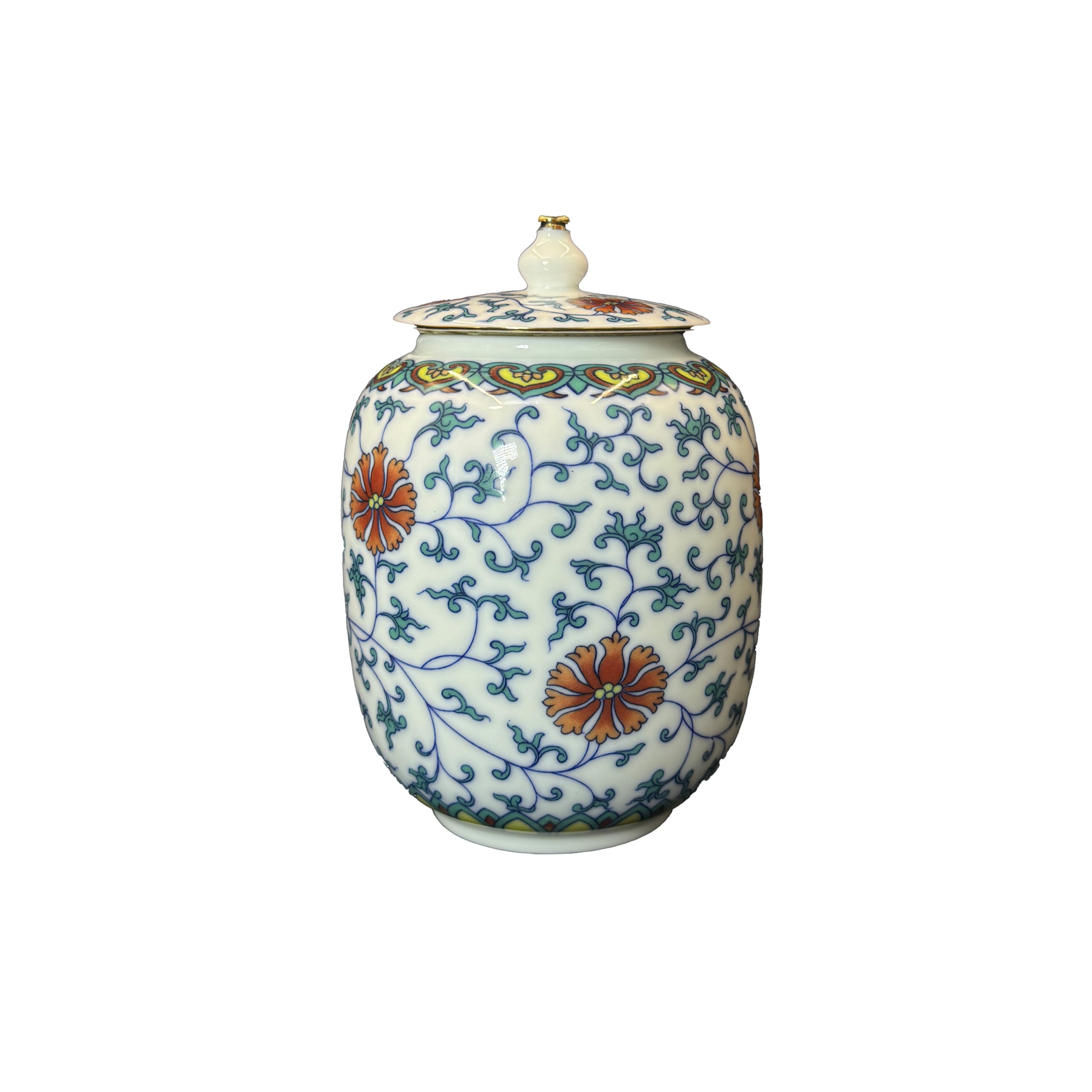 Floral Scroll Ceramic Storage Jar – Chinese Traditional Tea Canister