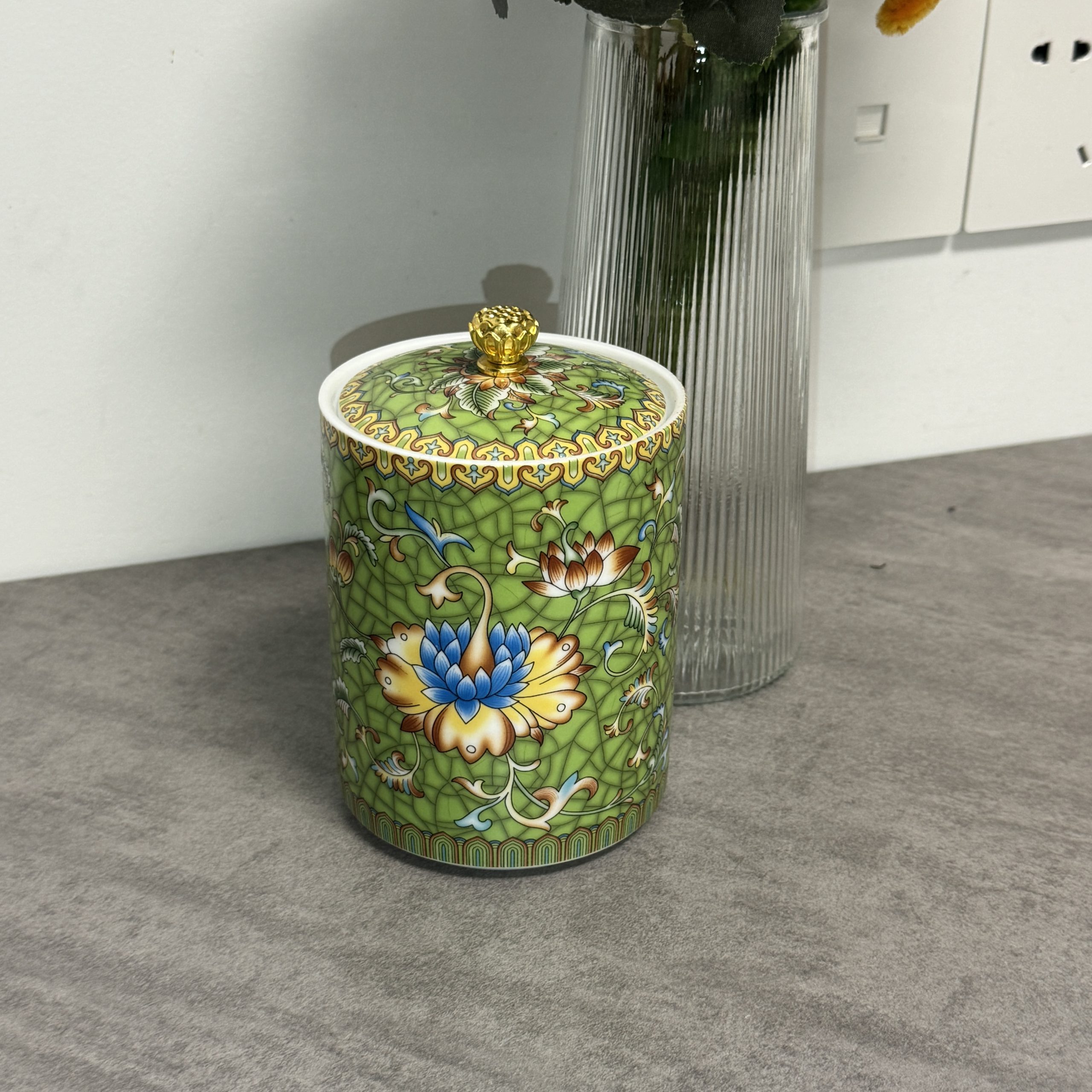 Be the first to review “Green Enamel Floral Ceramic Storage Jar with Golden Knob – Multipurpose Canister”