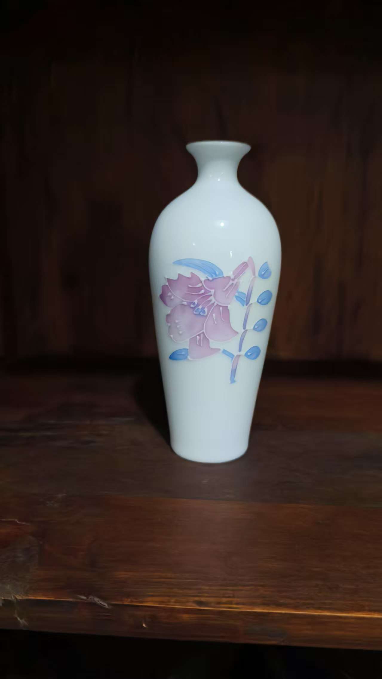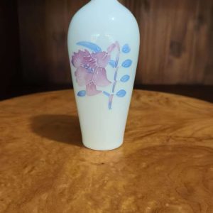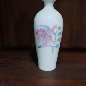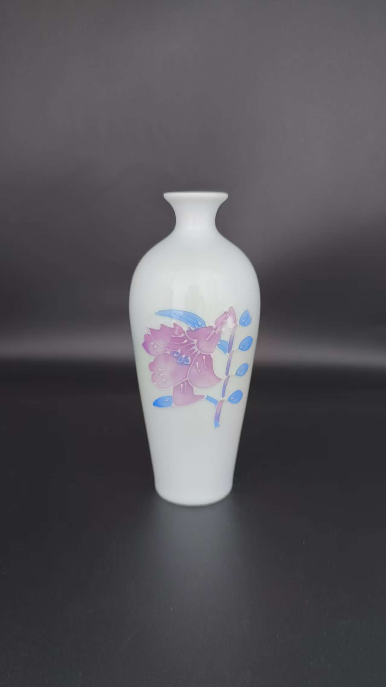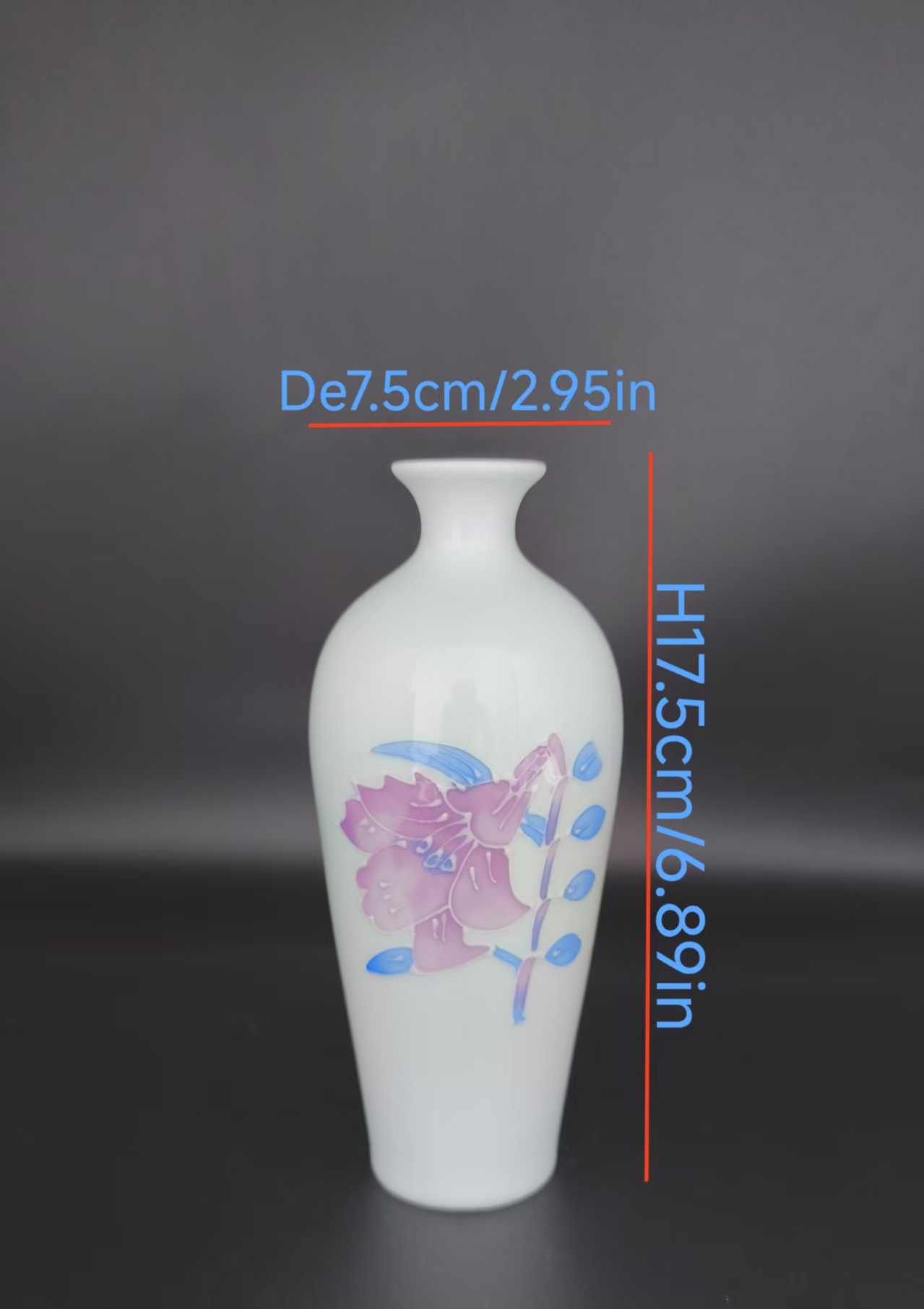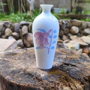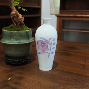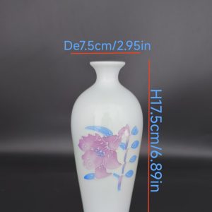 Add a touch of refined elegance to your space with this white ceramic vase featuring delicate pink – purple floral and blue leaf patterns. Perfect for flower displays or as a decorative accent.
