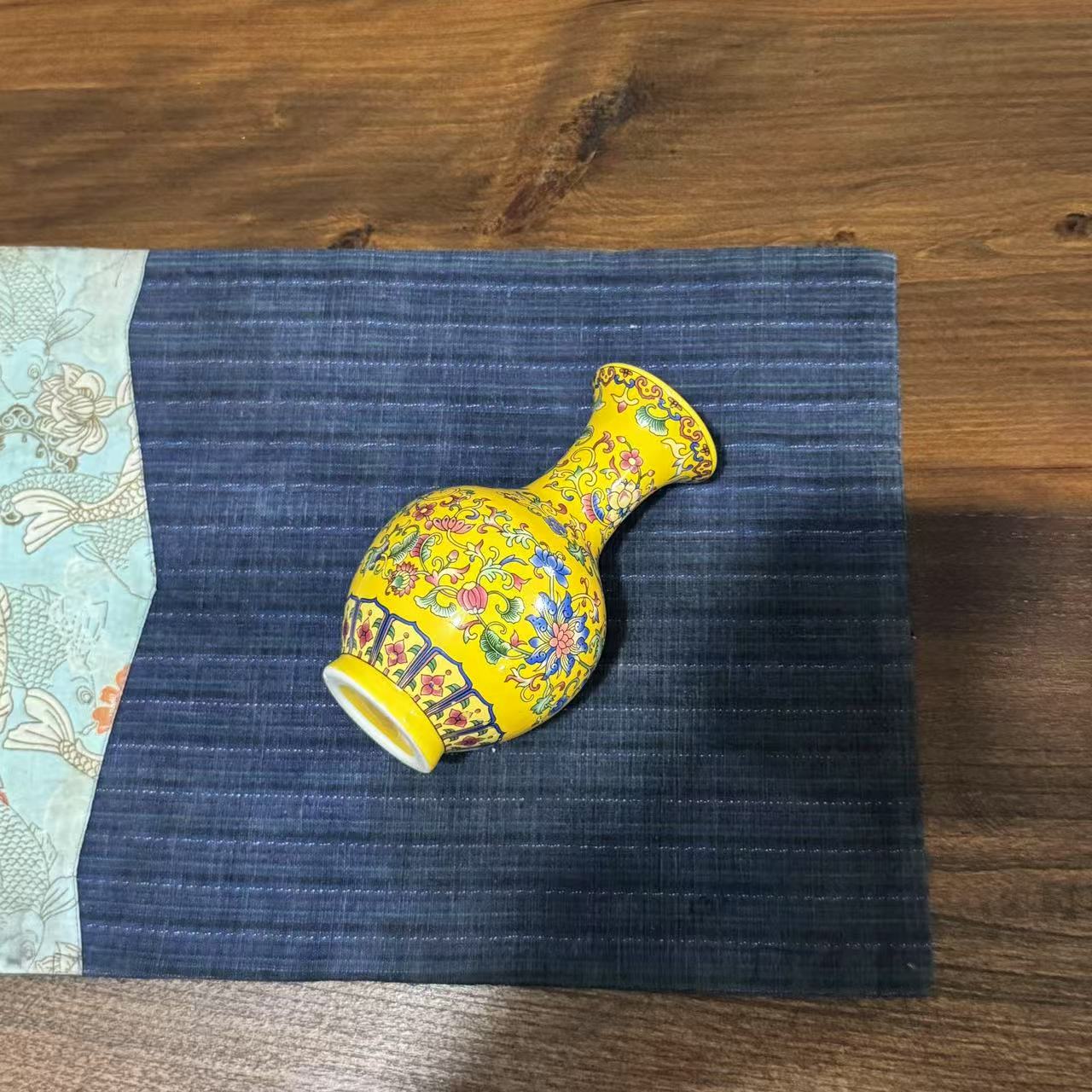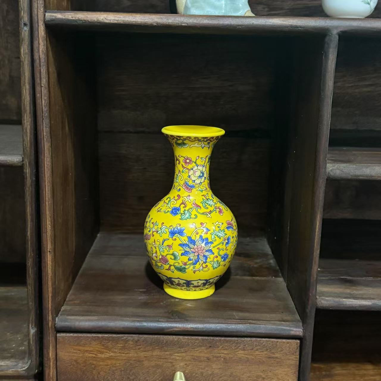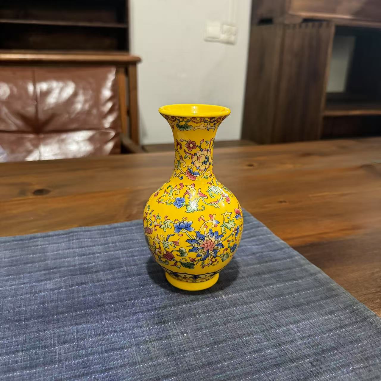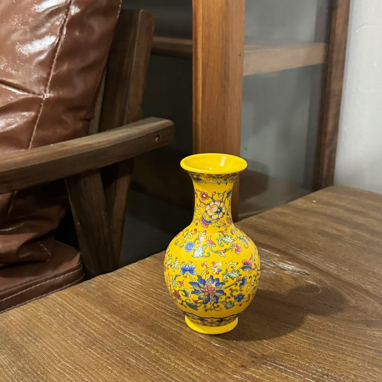 Elevate your space with this vibrant yellow ceramic vase featuring exquisite colorful floral patterns. Perfect for flower displays or as a decorative accent.