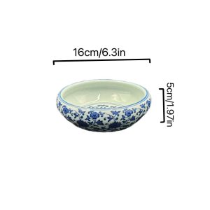 Blue and White Chinese Ceramic Bowl with Lotus Vine Patterns – Elegant Home & Tea Decor